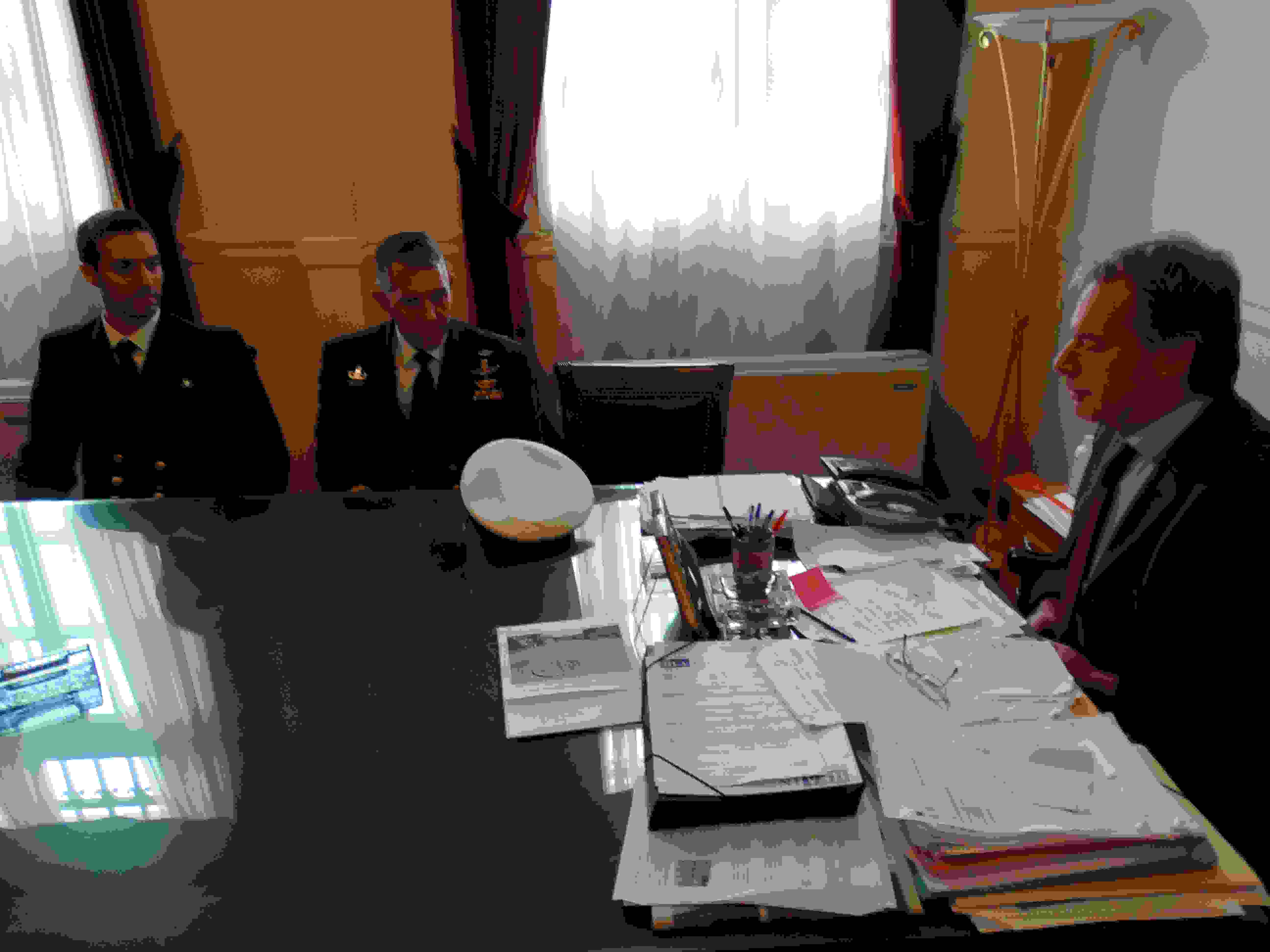 Σε μία σεμνή Τελετή Υποδοχής ο κ.Κεκάτος προσέφερε την Τιμητική Πλακέτα του Δήμου στον κ.Κυβερνήτη σε ένδειξη σεβασμού και τιμής προς την ιστορική κανονιοφόρο, που κατέπλευσε στο Νησί στα πλαίσια Άσκησης και Ναυτικής επιτήρησης στο Ιόνιο πέλαγος.