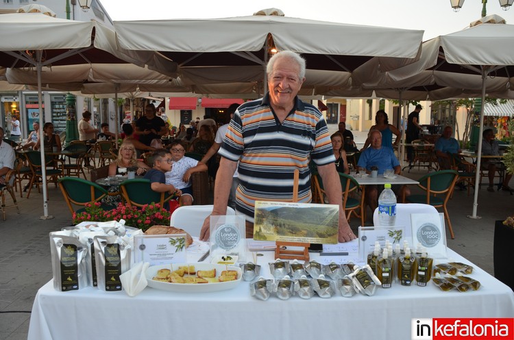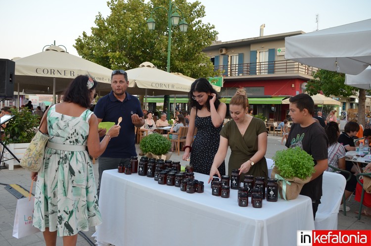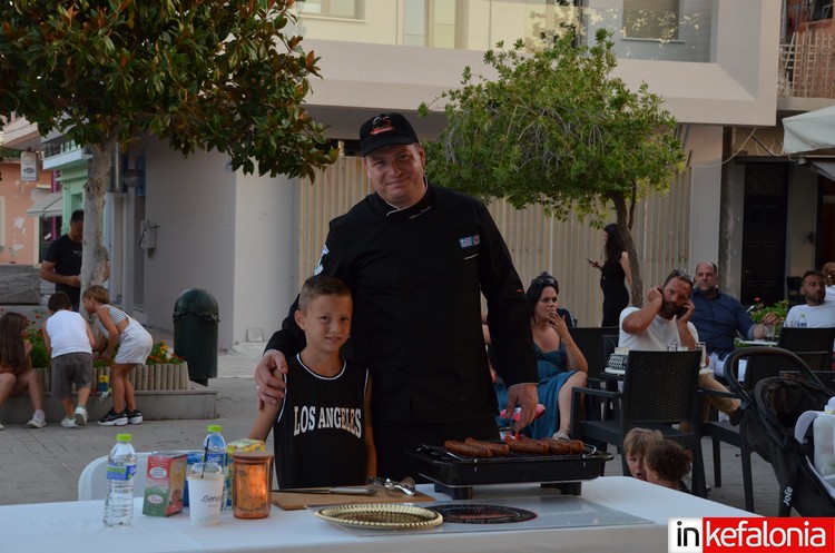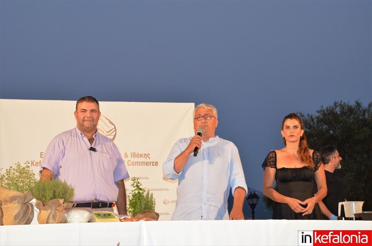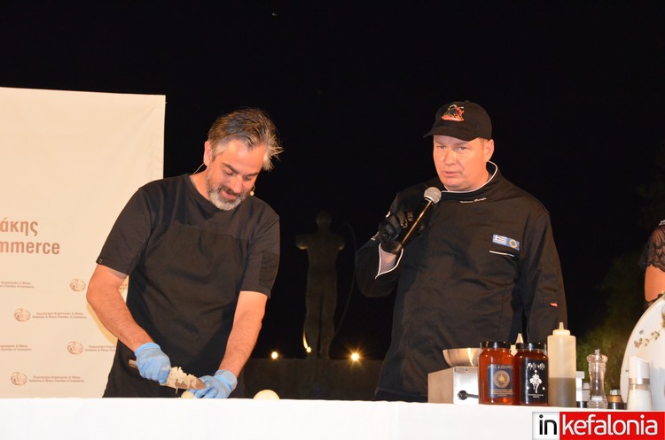 Μετά τους χαιρετισμούς των Δήμαρχου Ληξουρίου Γιώργου Κατσιβέλη, του Προέδρου Επιμελητηρίου Κεφαλονιάς και Ιθάκης Σταύρου Σπαθή και εκ μέρους της Περιφερειακής Ενότητας, η Βάνια Σαμόλη, ο βραβευμένος σεφ Γιάννης Μάργαρης ετοίμασε γευστικά πιάτα.