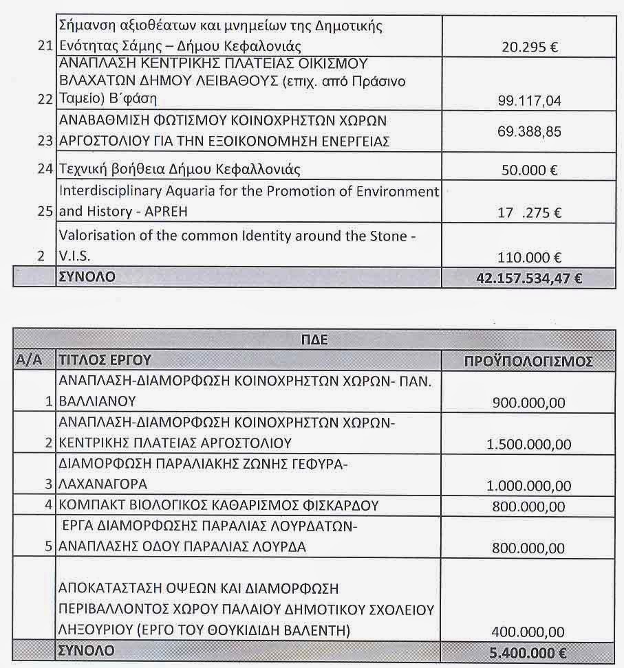 Πίσω στην Αρχική 47.500.000 ΕΥΡΩ ΣΕ ΕΡΓΑ ΕΝΕΤΑΞΕ Ο ΠΑΡΙΣΗΣ (ΑΝΑΛΥΤΙΚΟΙ ΠΙΝΑΚΕΣ) 14/04/2014 47.500.000 ευρώ σε έργα ενέταξε σε Ευρωπαικά προγράμματα και Πρόγραμμα Δημοσίων Επενδύσεων. Κάντε κλικ στους πίνακες για να δείτε τα έργα αναλυ τικά… Tweet Share Plus one Pin It Άλλα άρθρα Απάντηση στη «Λαϊκή Συσπείρωση» για το βιολογικό Λάσσης: Η ΔΕΥΑ Κεφαλονιάς ανέθεσε σε εξειδικευμένο μελετητή προκειμένου να προβεί σε διορθώσεις Απάντηση προς Δημοτική Παράταξη Δήμου Αργοστολίου «Λαϊκή Συσπείρωση» σε επερώτηση με θέμα «ΜΗ ΟΡΘΗ ΛΕΙΤΟΥΡΓΙΑ ΤΗΣ… Δήμος Ληξουρίου: Με δυο νέα μηχανήματα ενισχύθηκε η υπηρεσία καθαριότητας [εικόνες] Δύο πολύ σημαντικά μηχανήματα που αποδεικνύουν ότι ο Δήμος Ληξουρίου αναβαθμίζει τις υπηρεσίες καθαριότητας και… Έργα Παρίση η πλατεία Βλαχάτων και ο δρόμος της Λαγκάδας -Δείτε τα σχετικά έγγραφα Είναι σημαντικό και κρίσιμο να καταγράφεται η πραγματικότητα και η αλήθεια όσο αφορά σπουδαία έργα…