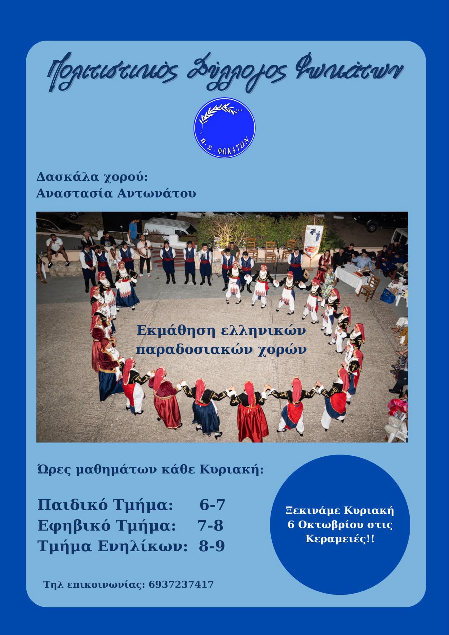 Αγιασμός και έναρξη μαθημάτων παραδοσιακών χορών από τον Πολιτιστικό Σύλλογο ΦΩΚΑΤΩΝ