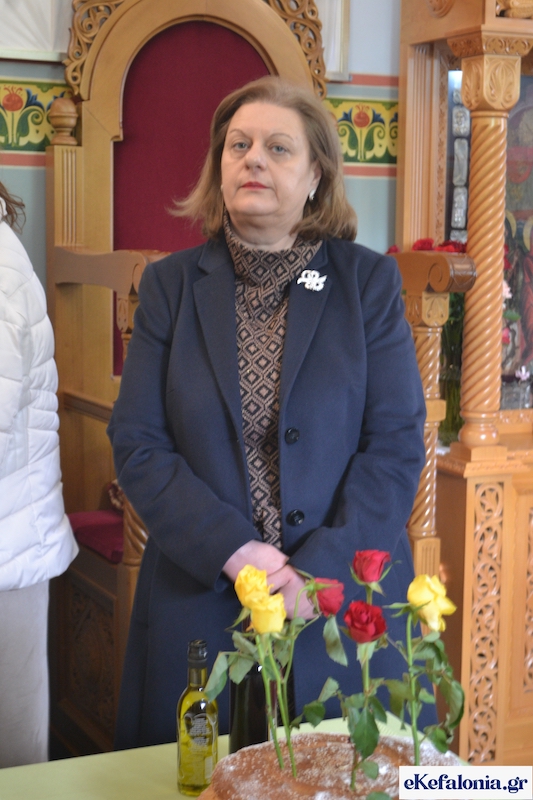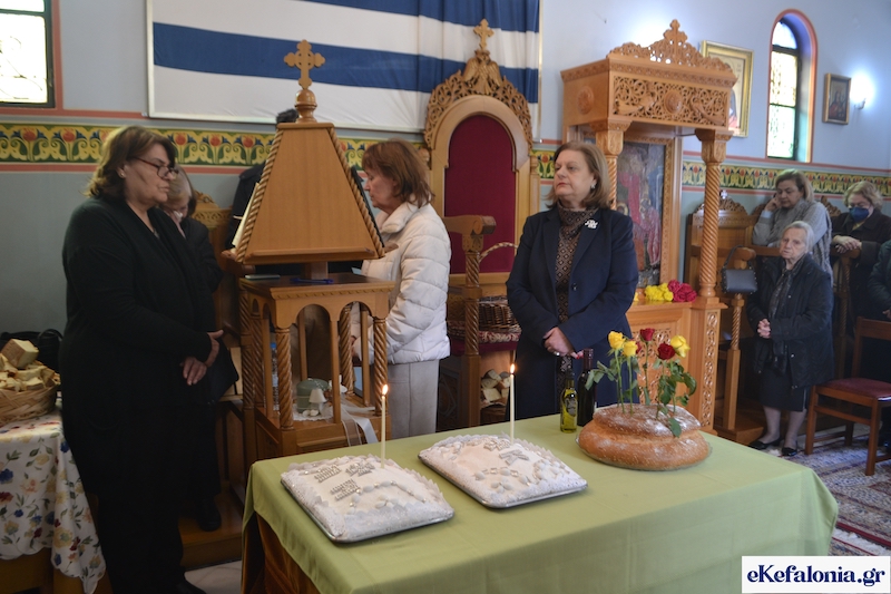 Η κα Μέμη Γεράκη κατά την τέλεση επιμνημόσυνης δέησης υπέρ της ανάπαυσης των ψυχών των Παναγή καί Μαριάτζης Γεράκη