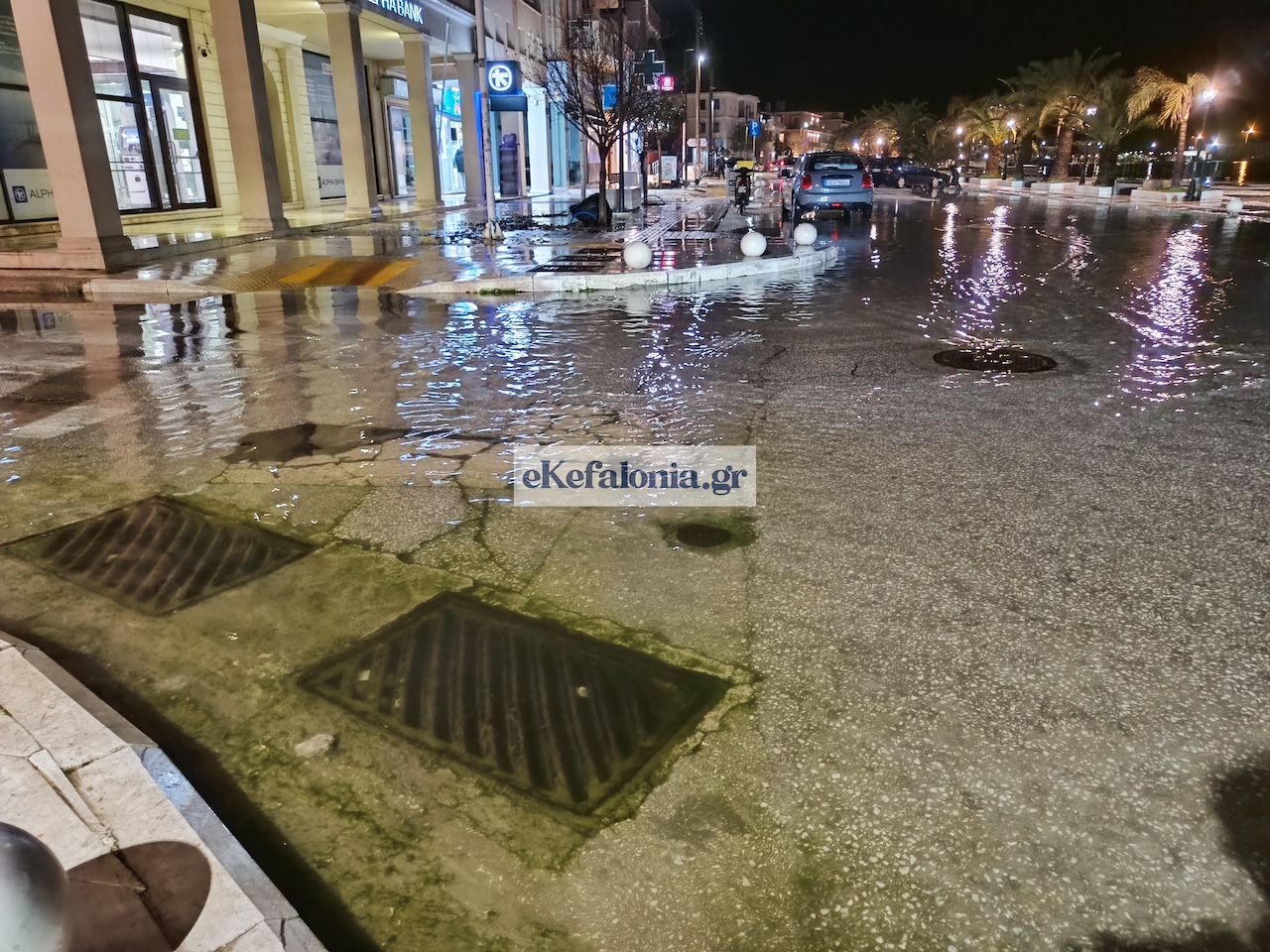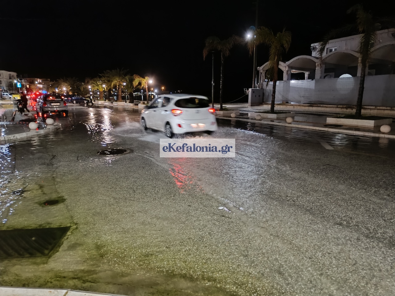 Το σκηνικό ίδιο: απροσπέλαστοι δρόμοι μισοβυθισμένα πεζοδρόμια, ενώ το θαλασσινό νερό το οποίο διασχίζουν σχεδόν καθημερινά πλεον οι οδηγοί στην παραλιακή του Αργοστολίου, απειλεί με σοβαρές βλάβες τα οχήματά τους.