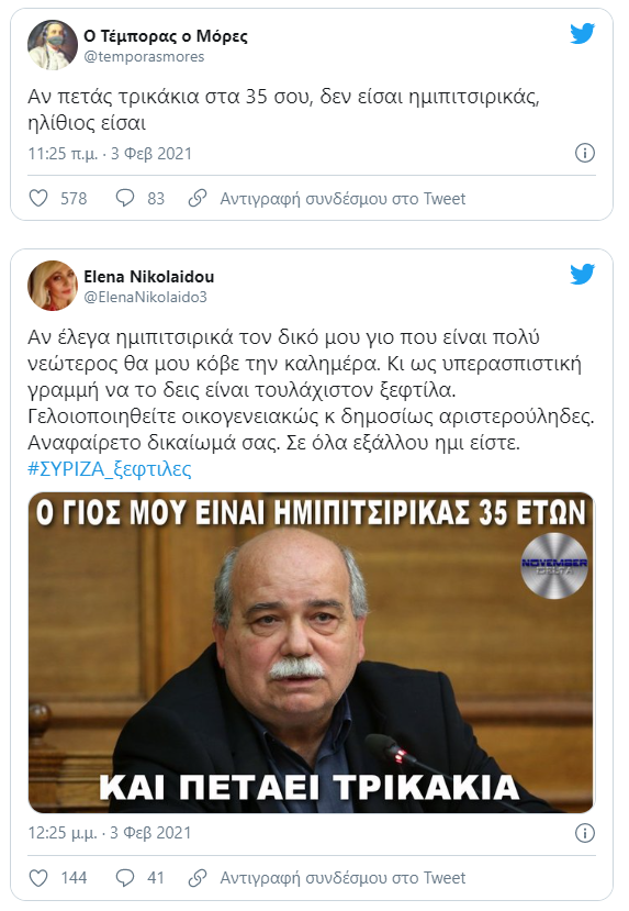Τότε, σε διαδικτυακή συζήτηση του ΣΥΡΙΖΑ, ο κ. Βούτσης δικαιολόγησε τις πράξεις του γιου του, χαρακτηρίζοντάς τον «ημιπιτσιρικά» στα… 35 του χρόνια.