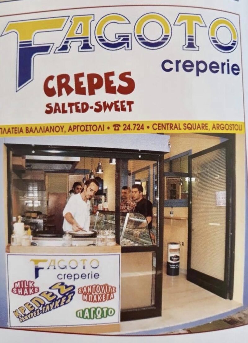 1998 | FAGOTO: Το πρώτο κατάστημα αποκλειστικά για κρέπες γεννιέται στο Αργοστόλι. Ένα όνομα που έγινε θρύλος για το νησί και συνδέθηκε με τις πιο γλυκές αναμνήσεις των Κεφαλλονιτών.