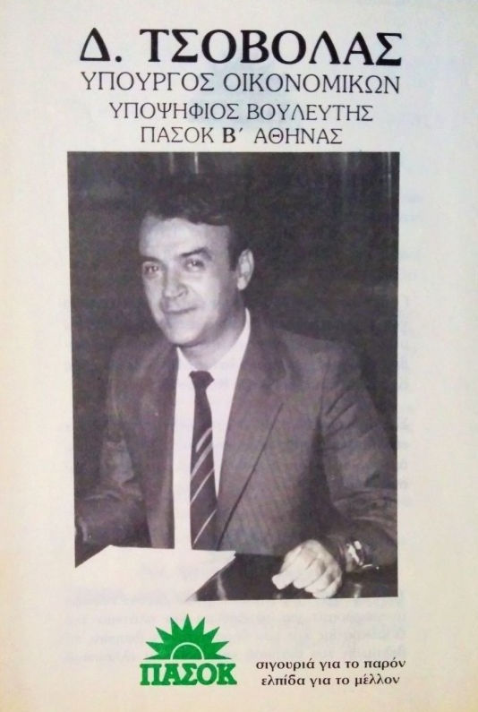 Σε προεκλογική συγκέντρωση στο Περιστέρι, στις 20 Απριλίου 1989, ο Ανδρέας Παπανδρέου είχε πει τη γνωστή φράση «Τσοβόλα δώστα όλα», καθώς ήταν δημοφιλής για τις πολιτικές παροχών που εφάρμοσε, κυρίως μετά το 1987, όταν αποχώρησε από τη θέση του υπουργού Εθνικής Οικονομίας ο Κώστας Σημίτης, ο οποίος είχε εφαρμόσει το σταθεροποιητικό πρόγραμμα μετά τη δεύτερη εκλογική νίκη του ΠΑΣΟΚ, το 1985.