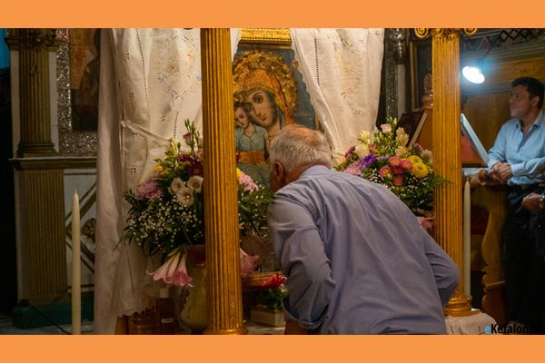 Η εικόνα της προστάτιδος του Αργοστολίου μεταφέρθηκε, με κάθε τιμή, στον Άγιο Σπυρίδωνα στο Λιθόστρωτο από τον Μητροπολίτη Κεφαλληνίας όπως αξίζει με κάθε μεγαλοπρέπεια και κυρίως με ευλάβεια.