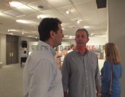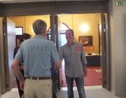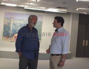 Μια μικρή συζήτηση είχαμε με τον ζωγράφο ο οποίος μας είπε, μετά από ερώτηση, ότι κατάγεται από τη Σάμη, αλλά στο μακρινό παρελθόν έφυγαν από την Κεφαλονιά και πήγαν σε ένα χωριό έξω από τη Σμύρνη. Εκεί τους φώναζαν “οι σάμιοι” και έτσι έγινε επώνυμο “Σαμιος”. Η Δόμνα Σαμίου είναι συγγενής του όπως είπε. Εκεί ήταν ο Πρόεδρος της ΚΕΔΗΚΕ Άγ. Κωνσταντάκης, ο αντιδήμαρχος Βαγ. Κεκάτος και ο πρώην Δήμαρχος Γιώργος Τσιλιμιδός.