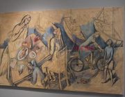 Ωστόσο αυτή τη φορά ο ζωγράφος μας αποκαλύπτει και μέρος του ατελιέ του, καθώς δεν λείπουν τα εργαλεία που χρησιμοποιεί, τα μοντέλα, τα έργα που δεν έχουν ακόμα πάρει την τελική τους μορφή και είναι πάνω στο καβαλέτο. Η ανθρώπινη παρουσία αυτή καθ’ αυτή δεν θα μπορούσε να λείπει από μια ζωγραφική που υμνεί τη γυναίκα και τον έρωτα με την πρώτη ευκαιρία.