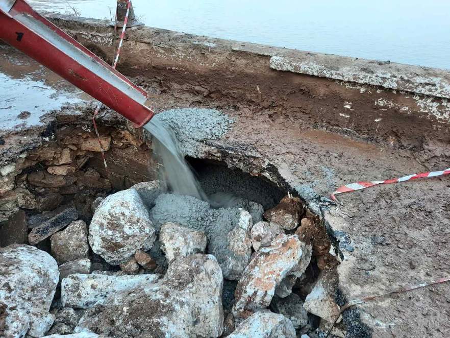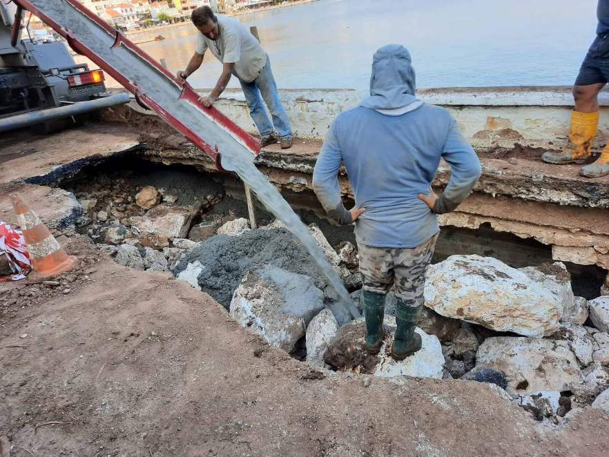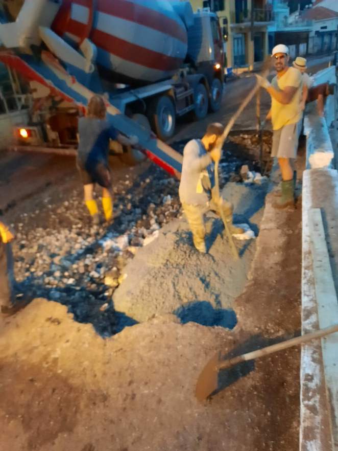 Ιδου ένα παράδειγμα από την πρόσφατη θεομηνία, εργάτες και μηχανήματα δουλεύουν νύχτα μέρα κυριολεκτικά, νύχτα μέρα αψηφώντας κάθε εμπόδιο, φυσικό, χρονικό, σωματικό, για την αποκατάσταση της σπηλαίωσηςτου λιμανιού της Αγ.Ευφημίας. Εκεί η φύση είναι  πλέον εκείνη που «υποκλίνεται στο μεγαλείο των ανθρώπων», ανθρώπων απλών, ανθρώπων  καθημερινών, ανθρώπων του μόχθου .