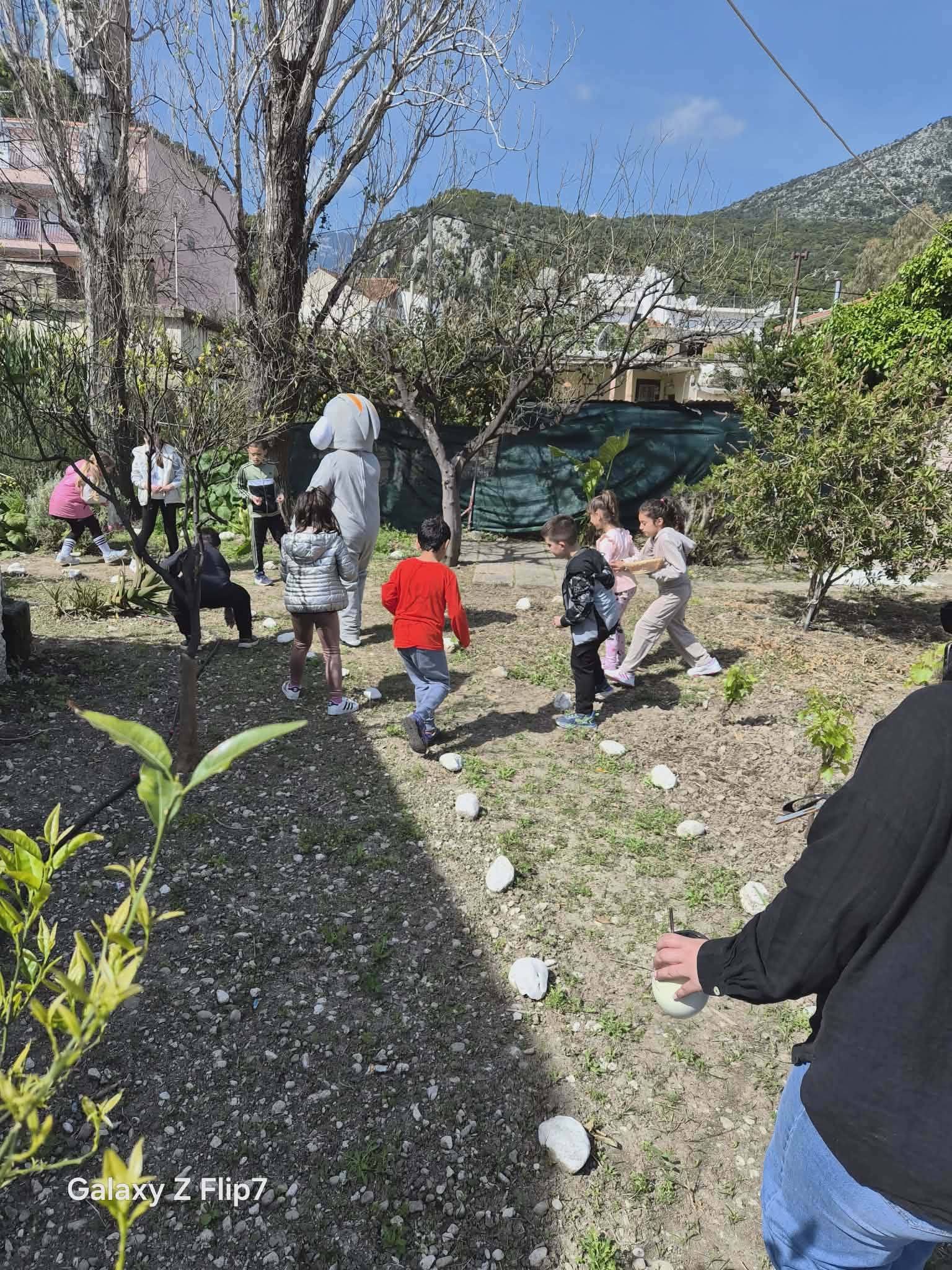 Από την πλατεία, η χαρούμενη παρέα κατευθύνθηκε στον όμορφο κήπο της γνωστής ζωγράφου Νατάσας Μεταξά, όπου τα παιδιά έψαξαν με ενθουσιασμό και βρήκαν τα κρυμμένα πασχαλινά αυγά, γεμίζοντας τον χώρο με φωνές χαράς και ενθουσιασμού.