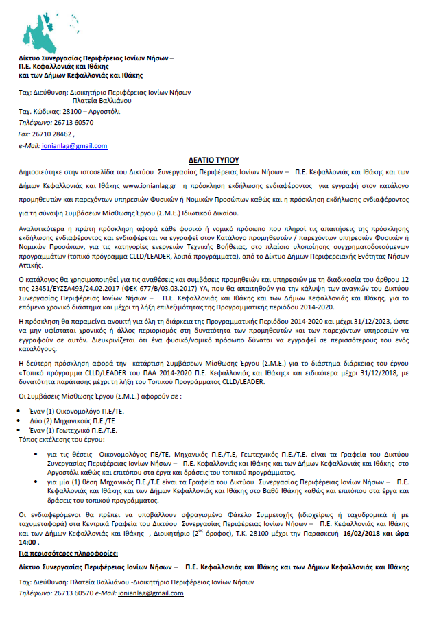 ΕΠΕΙΓΟΝ: 2 ΠΡΟΣΚΛΗΣΕΙΣ ΕΝΔΙΑΦΕΡΟΝΤΟΣ: ΓΙΑ ΕΓΓΡΑΦΗ ΣΕ ΚΑΤΑΛΟΓΟ ΠΡΟΜΗΘΕΥΤΩΝ & ΓΙΑ ΠΡΟΣΛΗΨΕΙΣ