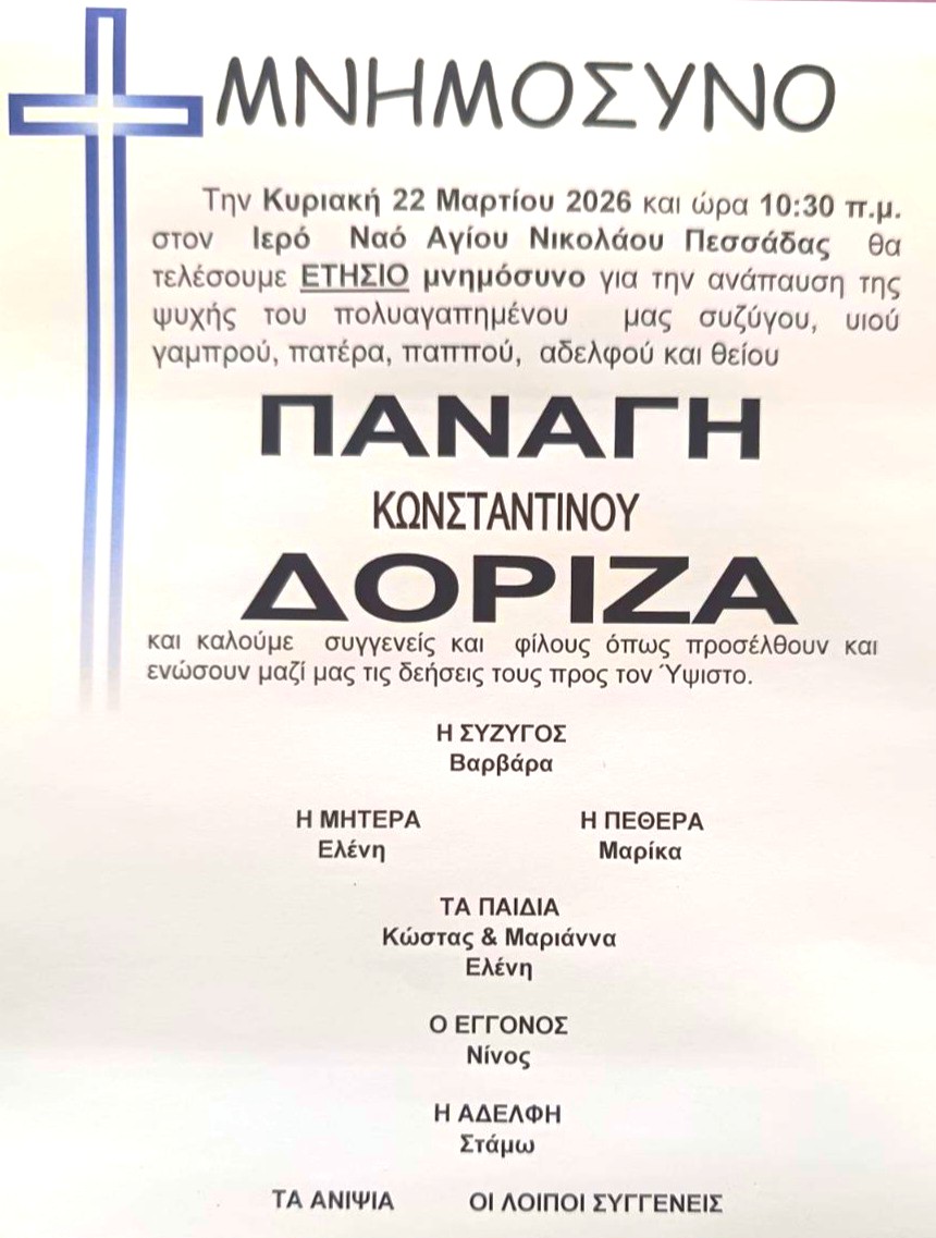 Ετήσιο Μνημόσυνο Παναγή Δόριζα Φίλε μου δεν σε Ξεχνώ και σε Τιμώ