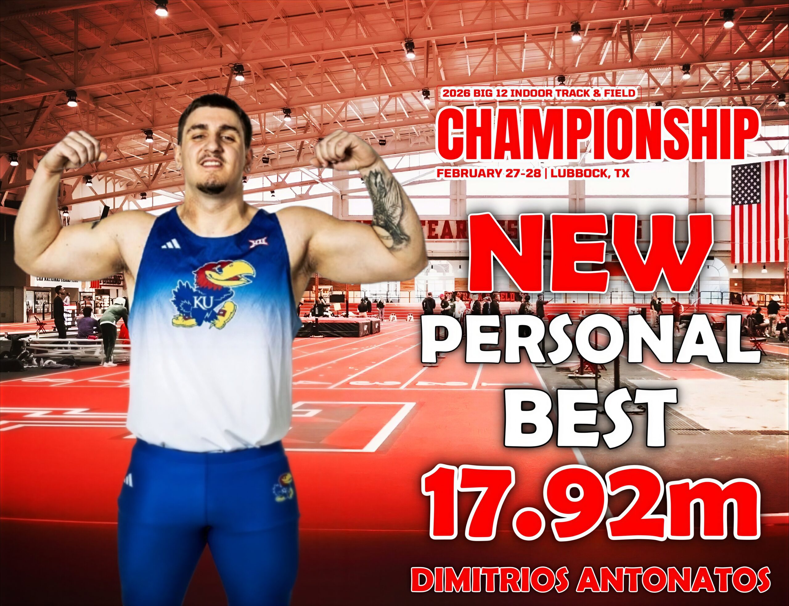 Εξαιρετική εμφάνιση πραγματοποίησε ο Δημήτρης Αντωνάτος στο Big12 Championships καθώς σημείωσε νέο ατομικό ρεκόρ στη σφαιροβολία ρίχνοντας 17.92μ.