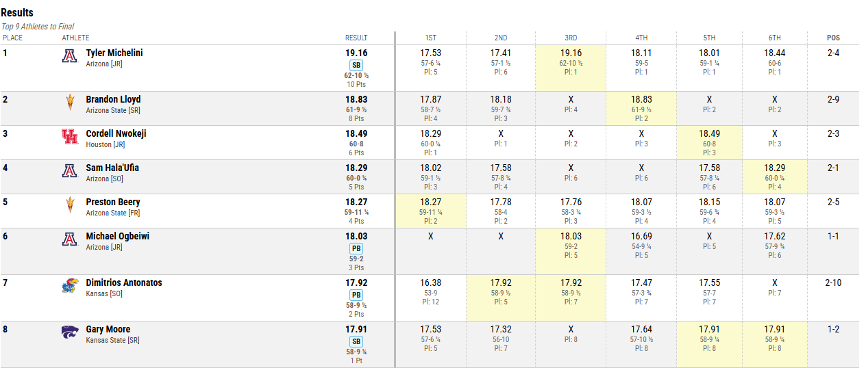 Το προηγούμενο ρεκόρ του αθλητή μας ήταν 17.78μ που είχε πετύχει πέρυσι τον Απρίλιο στο Rock Chalk Classic.