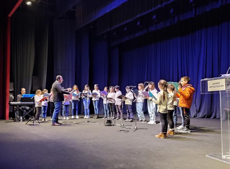 Η εκδήλωση άνοιξε με την παιδική χορωδία του Αργοστολίου να τραγουδάει 4 όμορφα άσματα του κ. Κυπουργού και συγκεκριμένα τα “Κύλα γιαουρτοπόταμε”, “Απ’τα κουμπάκια ανάμεσα, “Ο μικρός πρίγκιπας” και “Το χρυσαλιφούφουρο” υπό την καθοδήγηση του μαέστρου της Άγγελου Μουρελάτου, ταξιδεύοντας τους παρευρισκόμενους στον μαγικό κόσμο της μουσικής.