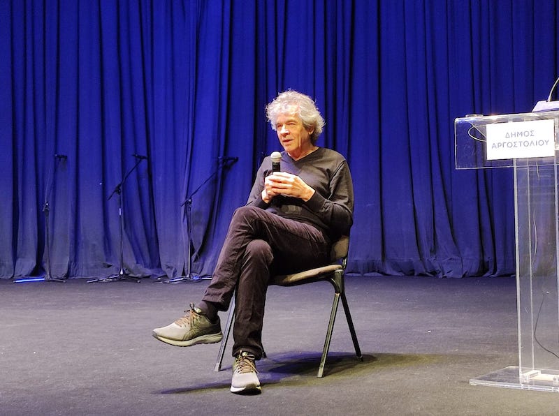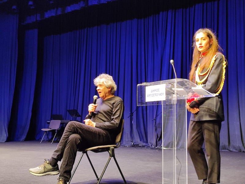 Τέλος, αναφέρθηκε με συγκίνηση στην Ορχήστρα των Κυκλάδων, μια προσπάθεια που ξεκίνησε όταν νέοι διαφορετικών μουσικών προσεγγίσεων τον βρήκαν στη Σύρο και από αυτό προέκυψε η θαυμάσια Ορχήστρα με πολλές και σπουδαίες εμφανίσεις ανά την Ελλάδα. Τόνισε ότι κάτι τέτοιο θα μπορούσε να δημιουργηθεί και στην Κεφαλονιά.