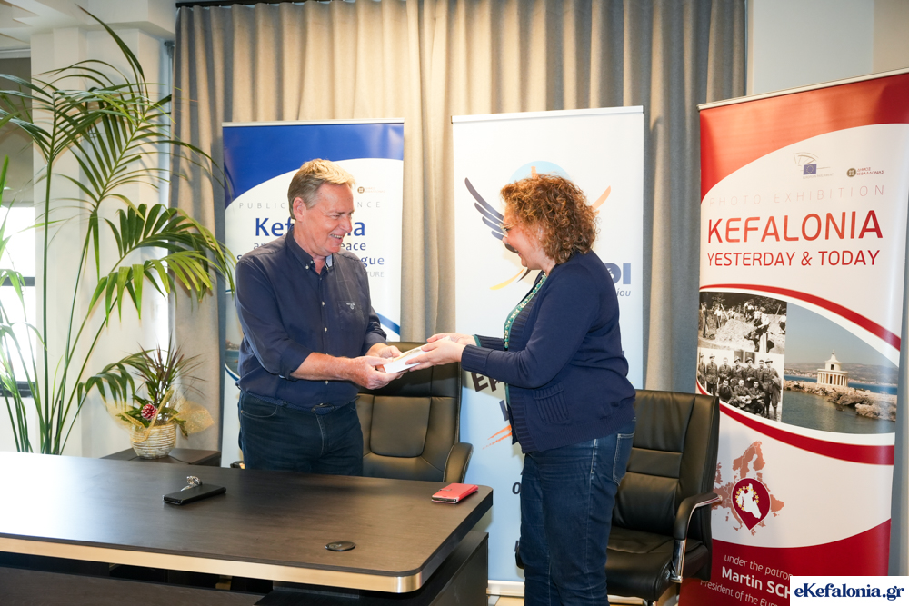 Στο πλαίσιο της επίσκεψή της στο νησί μας, η συγγραφέας του βιβλίου «Il prisma della Storia» Elisabetta Giudrinetti πέρασε από τα γραφεία της δημοτικής παράταξης «Αετοί» για να παραδώσει το βιβλίο στον πρώην αναπληρωτή δήμαρχο Διονύσιο Λυκούδη, ο οποίος είχε στηρίξει την ερευνητική προσπάθεια. Λόγω απουσίας του, το βιβλίο παρέλαβε ο κ. Κεκάτος πρώην αντιδήμαρχος του πρώην ενιαίου Δήμου Κεφαλονιάς, ο οποίος την είχε βοηθήσει στην έρευνα.