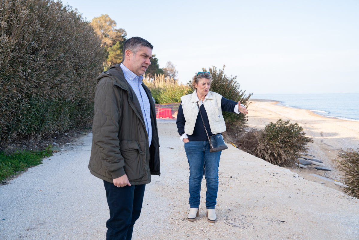 Νωρίτερα, μαζί με την κα Γαβριελάτου, επισκεφθήκαμε την κατεστραμμένη παραλία, προκειμένου να διαπιστώσουμε από κοντά το μέγεθος των ζημιών, που προκάλεσε η κακοκαιρία των περασμένων ημερών.