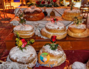 Τηρώντας όλα τα μέτρα προστασίας και διασφαλίζοντας τις απαραίτητες αποστάσεις τελέσθηκε τόσο ο Πανηγυρικός Εσπερινός μετά αρτοκλασίας, όσο και η Ιερά Αγρυπνία και η σημερινή Αρχιερατική θεία Λειτουργία στον Ιερό Ναό.