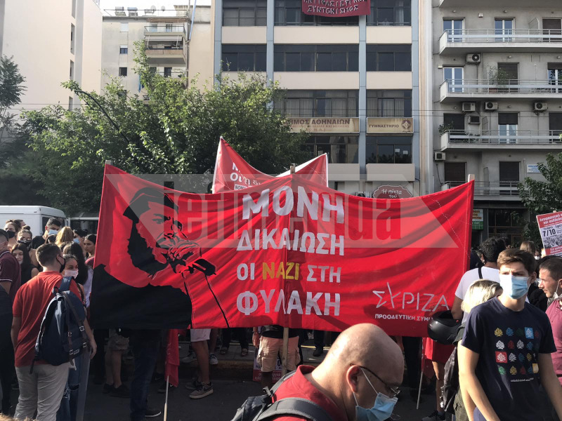 - Λίγο πριν από τις 9 το πρωί, με κεντρικό σύνθημα «Δεν είναι αθώοι, οι ναζί στη φυλακή», άρχισαν να συγκεντρώνονται μπροστά από το Εφετείο Αθηνών πλήθος κόσμου, πολιτικά κόμματα, σωματεία, συνδικαλιστικές ομοσπονδίες, συνδικάτα, αντιφασιστικές πρωτοβουλίες οργανώσεις της Αριστεράς, φοιτητές, μαθητές, καθώς και συλλογικότητες του αντιεξουσιαστικού χώρου.