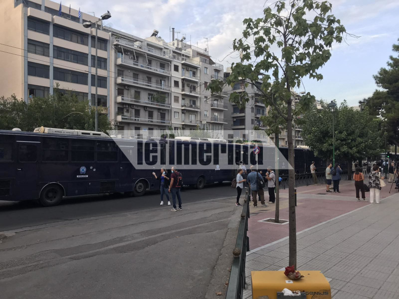 Πλήθος δημοσιογράφων, καθώς το ενδιαφέρον είναι ιδιαίτερο, συγκεντρώθηκε από νωρίς έξω από το Εφετείο. - Κλούβες στην περιοχή από νωρίς το πρωί, σε μια προσπάθεια να χτιστεί ένα τείχος και να αποφευχθούν τυχόν εντάσεις.