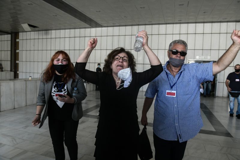 Τόσο όσοι βρίσκονταν εντός της αίθουσας όσο και το τεράστιο συγκεντρωμένο πλήθος έξω από το Εφετείο ξέσπασαν σε χειροκροτήματα με την ανακοίνωση της ετυμηγορίας για τη Χρυσή Αυγή.