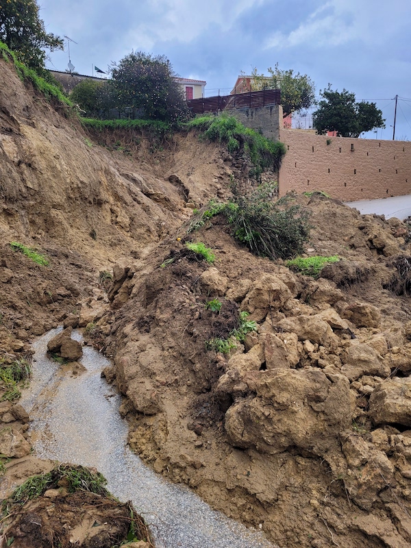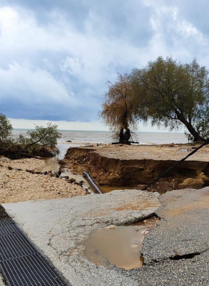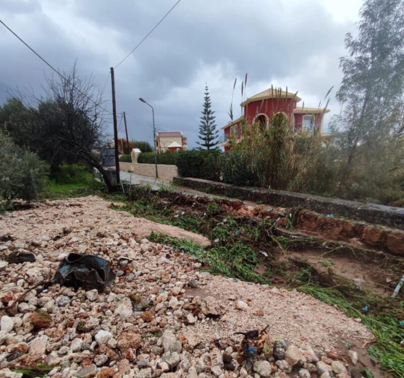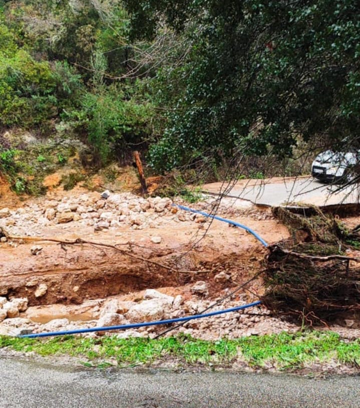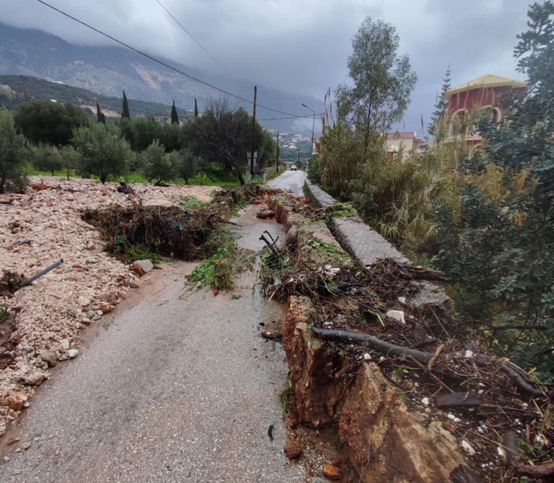 Στην περιοχή των Μουσάτων και ιδιαίτερα στον κάτω δρόμο προς Τραπεζάκι, το οδόστρωμα έχει καταστραφεί σε αρκετά σημεία, καθιστώντας την κυκλοφορία εξαιρετικά επικίνδυνη. Παράλληλα, στα Καλλιγάτα, τμήμα του δρόμου έχει υποχωρήσει, επιδεινώνοντας την κατάσταση στις ήδη πληγείσες υποδομές.