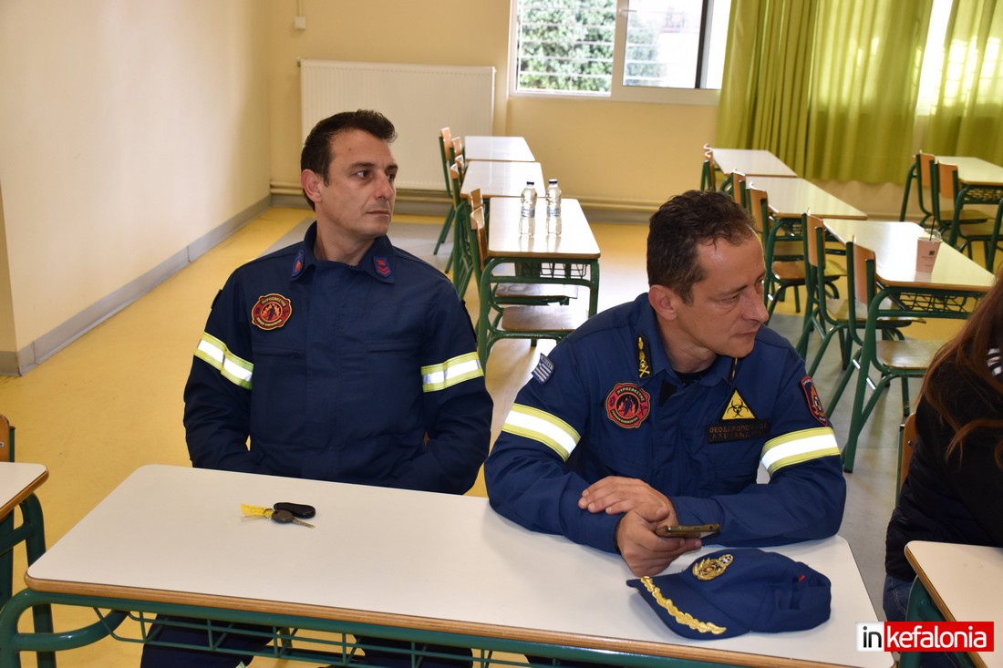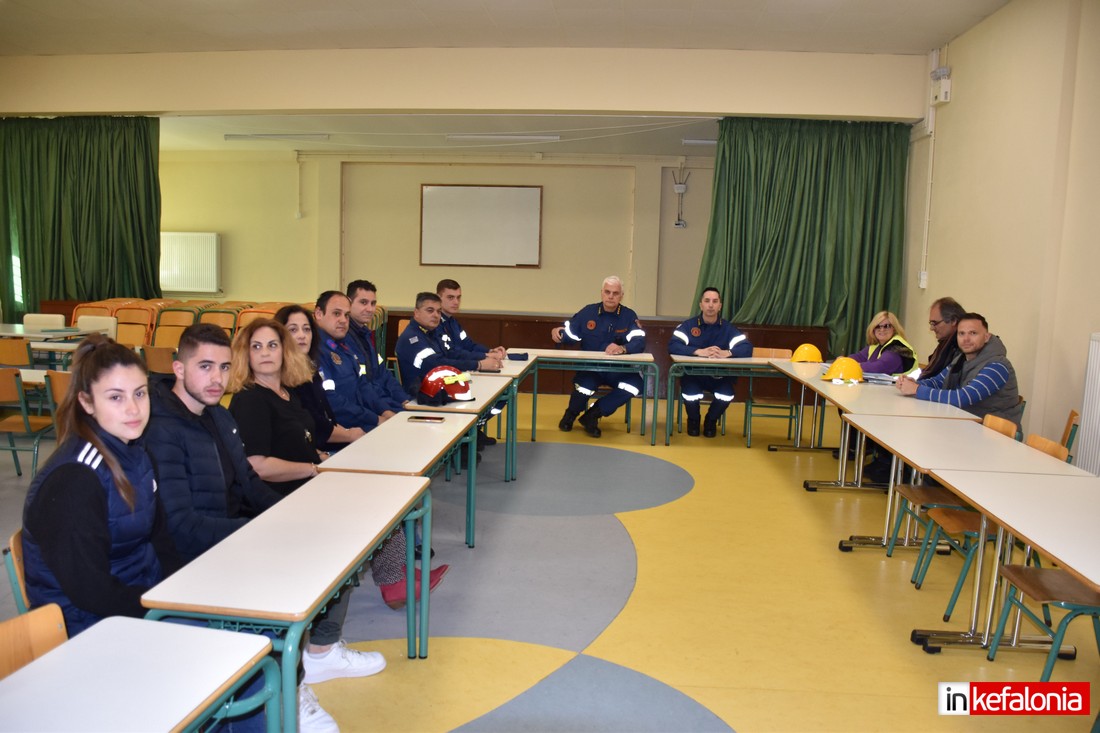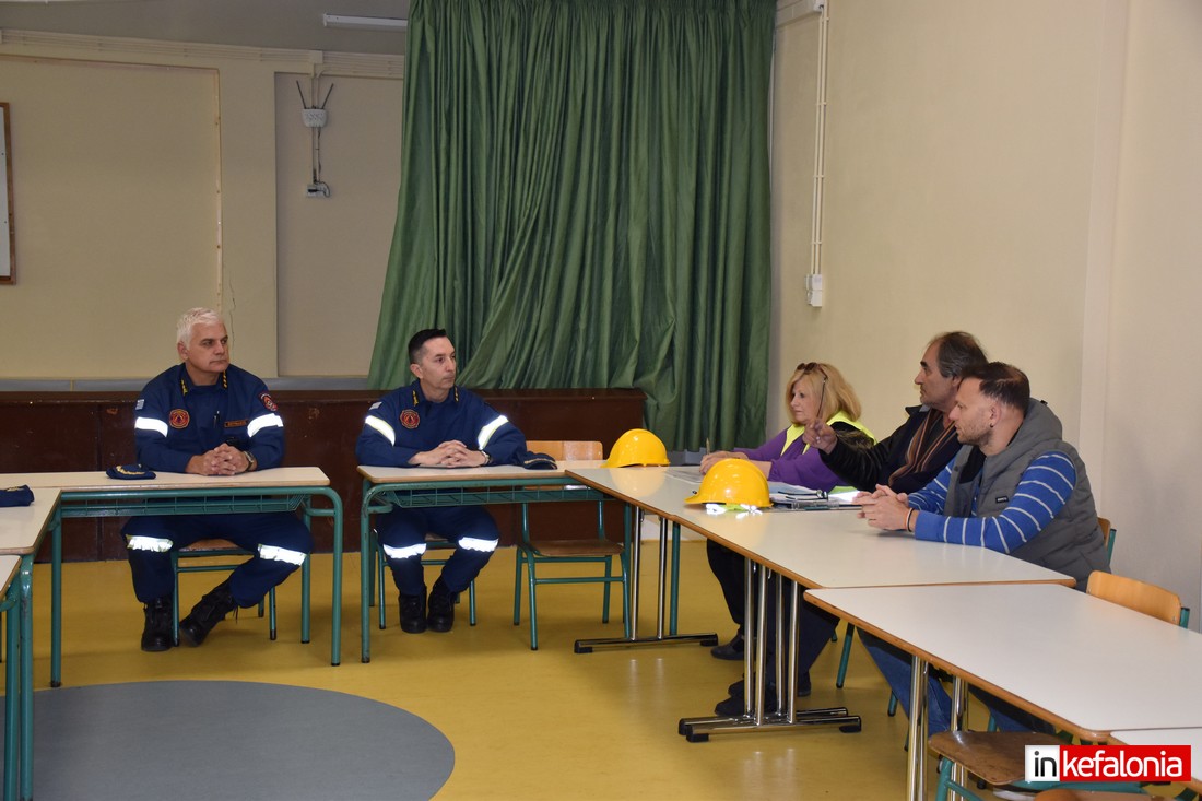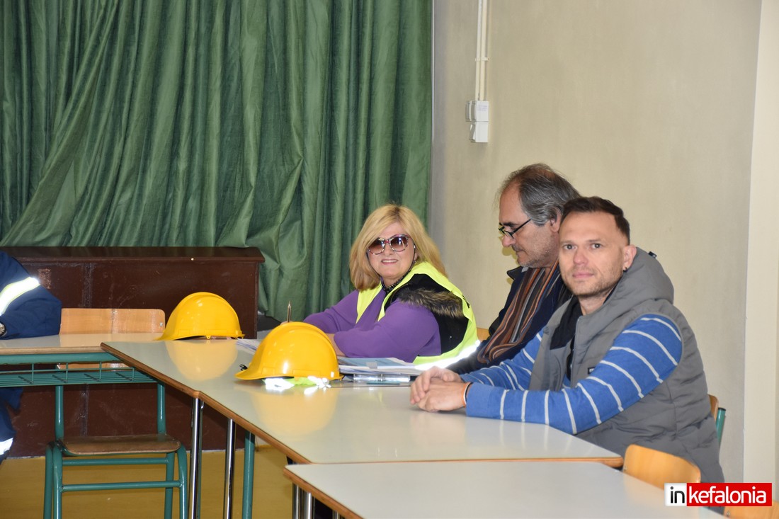 Στην άσκηση συμμετείχαν ο Λάμπρος Νικολάου (Πολιτική Προστασία Περιφερειακή Ενότητα Κεφαλονιάς Ιθάκης), ο Παναγιώτης Κουνάδης και η Ελένη Μπενετάτου ( Μηχανικοί του Δήμου Αργοστολίου), για ταχεία αυτοψία στο κτιριακό συγκρότημα του σχολείου, καθώς και Αστυνομικοί της Τροχαίας, για την ρύθμιση της κυκλοφορίας μετά το συμβάν.