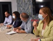 Το κλιμάκιο αποτελούσαν η Μαριλίζα Ξενογιαννακοπούλου Βουλευτής Βόρειας Αθήνας και τομεάρχης εργασίας και κοινωνικών υποθέσεων, η Χαρά Καφαντάρη Βουλευτής Δυτικής Αθήνας,αναπληρώτρια τομεάρχης πολιτικής προστασίας. ο Μίλτος Χατζηγιαννάκης, πρώην Βουλευτής Εύβοιας και αναπληρωτής τομεάρχης αυτοδιοίκησης και ο Αλέκος Αυλωνίτης Βουλευτής στην Κέρκυρα, αναπληρωτής τομεάρχης τουρισμού. Παρέμβαση έγινε από το ν κ. Θεόδωρο Γαλιατσάτος, πρώην Περιφερειάρχης και την Αφροδίτη Θεοπεφτάτου πρώην Βουλευτής. Συντόνισε τη συνέντευξη ο Σπ. Παγώνης.