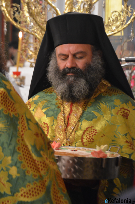 Μετά την αρτοκλασία, ο Σεβασμιώτατος κ. Χαρίτος στο θεόπνευστο λόγο του αναφέρθηκε στην οσιακή προσωπικότητα του Αγίου Γερασίμου κάνοντας ιδιαίτερη αναφορά στους μεγάλους πνευματικούς αγώνες του Αγίου, την θεογνωσία του και την μεγάλη του προσφορά στην Κεφαλονιά και στην Ορθόδοξο Εκκλησία, τονίζοντας πως για τους Κεφαλονίτες το Ιερό και άφθαρτο λείψανο του Αγίου Γερασίμου είναι ο πολύτιμος θησαυρός τους.