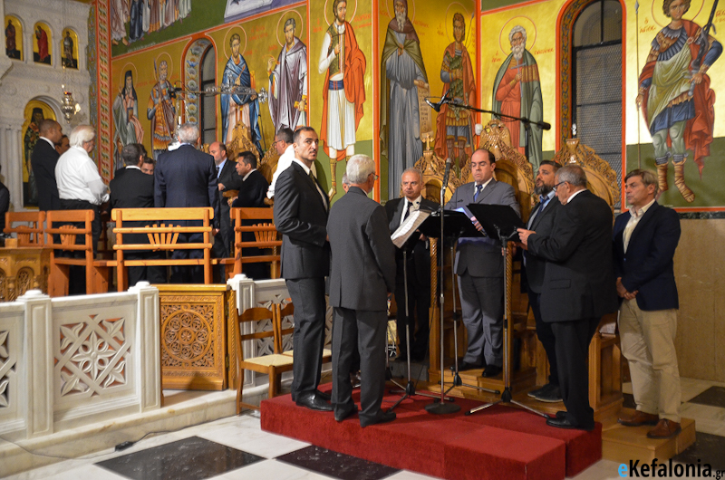 Θα πρέπει να σημειωθεί ότι όπως το 15αυγουστο, έτσι και σήμερα, είχαμε δύο Κεφαλλονίτικες χορωδίες να ψάλλουν σε Πανηγύρι στη μεγάλη εκκλησία του Αγίου μας. Πρόκειται για τη γνωστή εκκλησιαστική χορωδία του Αργοστολίου με Χοράρχη τον γνωστό μαέστρο της Λυρικής Σκηνής Αγαθάγγελο Γεωργακάτο και την εκκλησιαστική χορωδία από το Ληξούρι με Χοράρχη τον Νικόλαο Βάλσαμο, λαμπρό νομικό Αθηνών και Διευθυντή της εκκλησιαστικής χορωδίας Αγίου Γεωργίου Καρίτση στην Αθήνα. Μαζί τους και ο συμπατριώτης μας καθηγητής Νίκος Φαραντούρης.