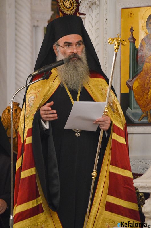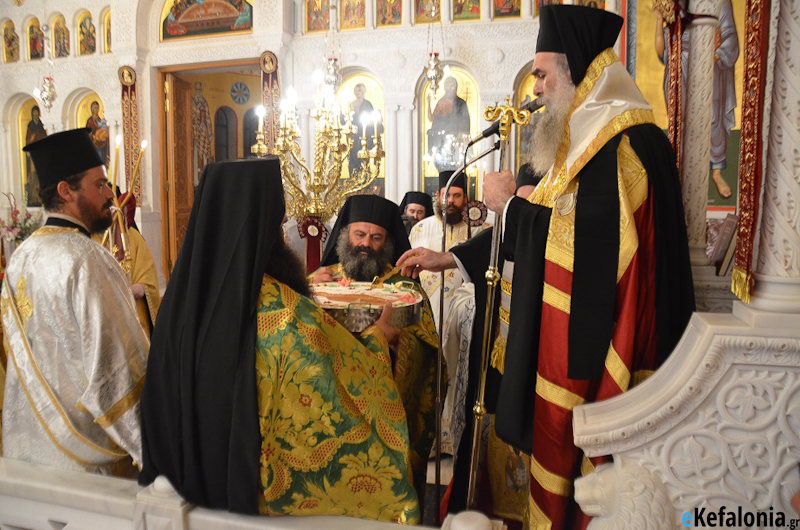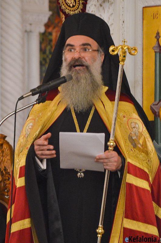 Μετά την αρτοκλασία, ο Σεβασμιώτατος κ. Χαρίτος στο θεόπνευστο λόγο του αναφέρθηκε στην οσιακή προσωπικότητα του Αγίου Γερασίμου κάνοντας ιδιαίτερη αναφορά στους μεγάλους πνευματικούς αγώνες του Αγίου, την θεογνωσία του και την μεγάλη του προσφορά στην Κεφαλονιά και στην Ορθόδοξο Εκκλησία, τονίζοντας πως για τους Κεφαλονίτες το Ιερό και άφθαρτο λείψανο του Αγίου Γερασίμου είναι ο πολύτιμος θησαυρός τους.
