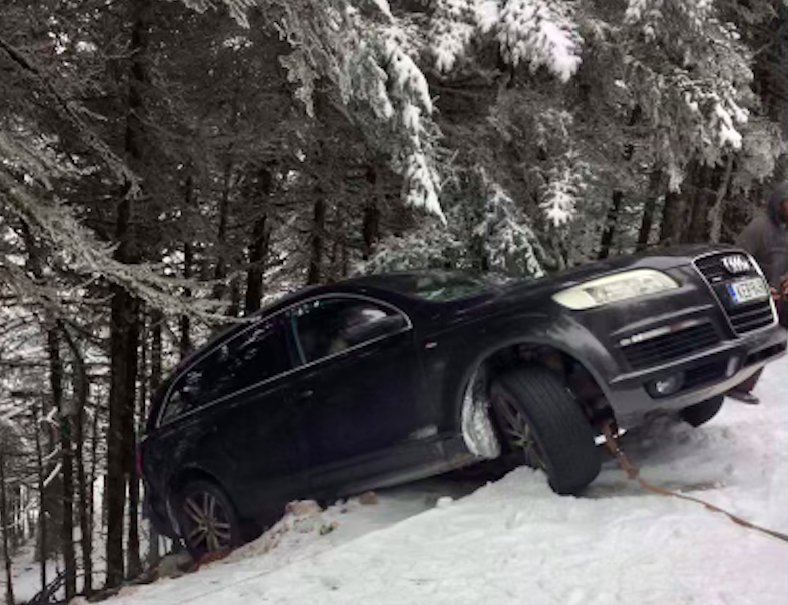 Δεν είναι υπερβολή να πούμε ότι λίγη ώρα νωρίτερα λαχτάρησε οδηγός όταν το αυτοκίνητο που οδηγούσε γλίστρησε εξαιτίας του πάγου και στην κυριολεξία κρεμάστηκε στο γκρεμό.