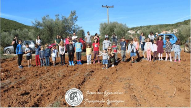 Η δράση πραγματοποιήθηκε στα Φραγκάτα στο χωράφι του κ. Νεόφυτου Λάμπρου τις 24 Οκτωβρίου 2020 σε συνεργασία με το Φορέα Διαχείρισης του Εθνικού Δρυμού Αίνου και την υπεύθυνη Ε.Κ.Φ.Ε. κ. Αναστασία Μαγουλά. Στην πλατεία του χωριού τα παιδιά άκουσαν για την σπορά, για τον μύθο της Δήμητρας και Περσεφόνης από τις κυρίες Μοσχονά, Μοσχοπούλου, Μαγουλά. Ακολούθως πήγαν στο χωράφι, το οργωμένο από τον κ. Νεόφυτο. Εκεί τα παιδιά έσπειραν, σβάρνισαν, έστησαν το «Γρηγοράκη», το σκιάχτρο για να προστατεύσει την σπορά από τα πουλιά, και φωτογραφήθηκαν στο τρακτέρ. Στο διάλειμμά τους απόλαυσαν σπιτικά κεκάκια και δροσερούς χυμούς. Ακολούθησε από τον Φορέα σπορά αρωματικών φυτών, κατά την οποία τα παιδιά έσπειραν σε μικρά γλαστράκια μέντα, ρίγανη, μελισσόχορτο, βασιλικό και πανευτυχή τα πήραν μαζί τους στο σπίτι.