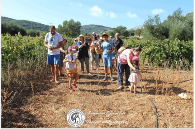 Η εκδήλωση πραγματοποιήθηκε στα Τρωϊαννάτα στο κτήμα του κ. Χριστοφοράτου Διονύση. Τα παιδιά, που συνοδεύονταν από τους γονείς τους, άκουσαν για το αμπέλι, τα σταφύλια, τον τρύγο. Ακολούθως τρύγησαν, απόλαυσαν ένα εξαιρετικό παραδοσιακό κολατσιό και έφυγαν ευτυχισμένα με υπέροχα σταφύλια στο καλαθάκι τους.