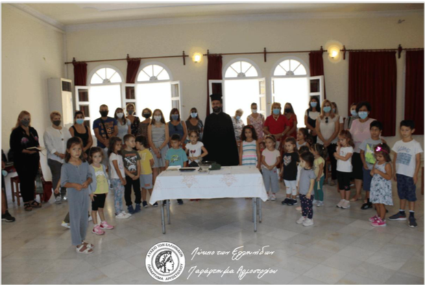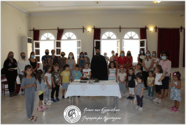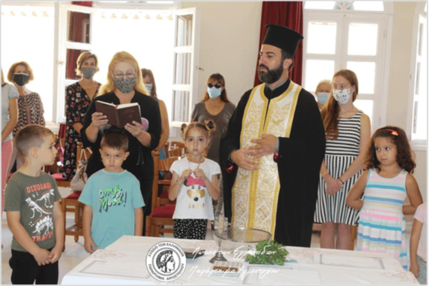 Τις 9 Οκτωβρίου 2020 πραγματοποιήθηκε στο Πνευματικό Κέντρο της Ιεράς Μητροπόλεως Κεφαλληνίας «Ο Απόστολος Παύλος» ο Αγιασμός από τον πατέρα Ανθιμο Καλαρρύτη. Συμμετείχαν το Διοικητικό Συμβούλιο και αντιπροσωπευτικά μικροί χορευτές με τους γονείς τους. Μοιράστηκαν τα αναμνηστικά της προηγούμενης Λυκειακής χρονιάς. Η κ. Μοσχονά απηύθυνε θερμό χαιρετισμό εκ μέρους του Διοικητικού Συμβουλίου, αναφέρθηκε στο έργο του Λυκείου, όπως διαμορφώνεται στα πλαίσια των καινοφανών λόγω Covid-19 συνθηκών, και ευχήθηκε καλή χρονιά.