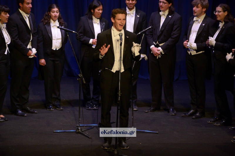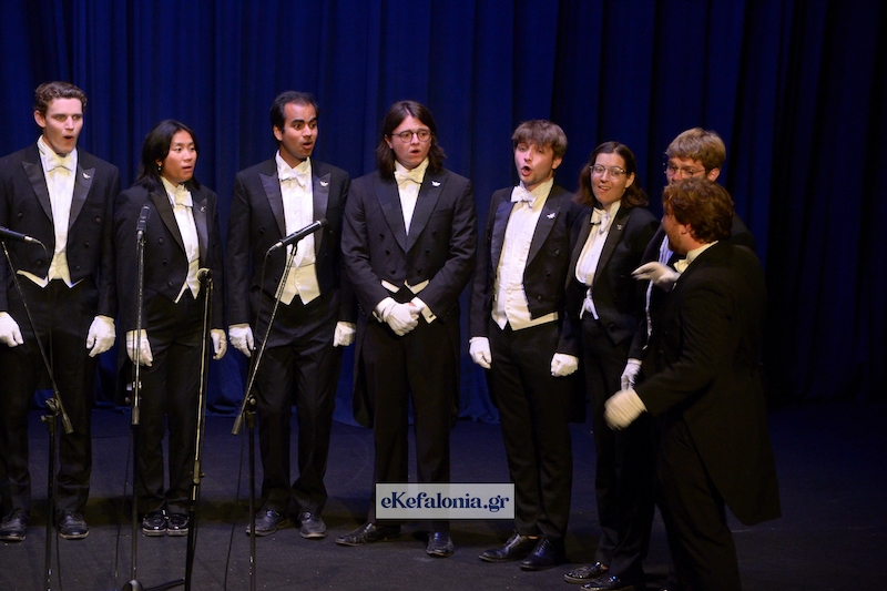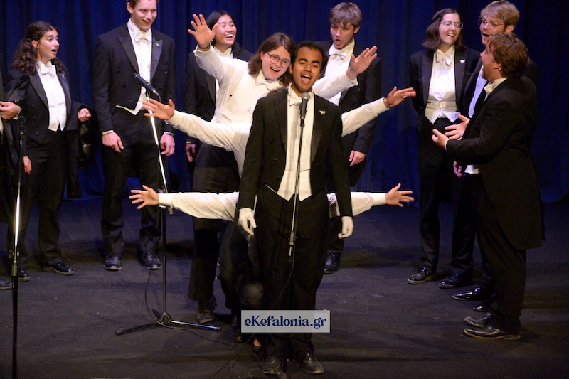 Μια ξεχωριστή βραδιά φωνητικής αρμονίας και υψηλής αισθητικής απόλαυσε το κοινό της Κεφαλονιάς την Κυριακή 15 Ιουνίου, στο Δημοτικό Θέατρο «Κέφαλος», με την εμφάνιση της διάσημης ανδρικής a cappella χορωδίας Whiffenpoofs του Πανεπιστημίου του Yale. Η ιστορική χορωδία, που ιδρύθηκε το 1909 στο Κονέκτικατ των Ηνωμένων Πολιτειών και έκτοτε έχει τραγουδήσει σε εμβληματικές σκηνές όπως ο Λευκός Οίκος και η Όπερα του Σίδνεϊ, ταξίδεψε για πρώτη φορά στην Κεφαλονιά και πρόσφερε ένα μουσικό πρόγραμμα γεμάτο φωνητική μαγεία, χιούμορ και ενέργεια.