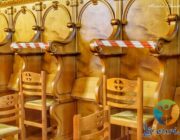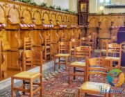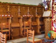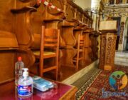 Στο εσωτερικό του Ναού, υπάρχουν αντισηπτικά και μάσκες προστασίας, ενώ με κορδέλες έχει περιοριστεί ο χώρος που θα μπορεί ο κάθε πιστός να καθίσει.