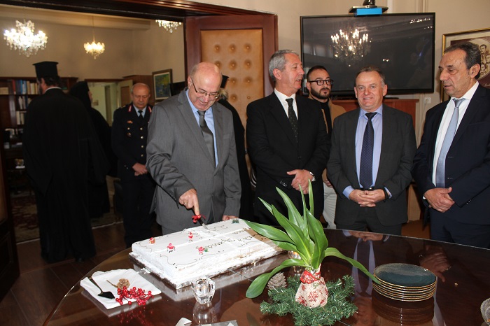 Ο Σωτήρης Κουρής και η Ελένη Παπαναστασάτου άκουσαν τα κάλαντα, αλλά και τέσσερα ακόμη τραγούδια της Κεφαλονιάς από τα μέλη της Χορωδίας και Μαντολινάτας Αργοστολίου. Ήταν πραγματικά συγκινητικές οι στιγμές. Κατόπιν ακολούθησε η κοπή της βασιλόπιτας, την οποία ευλόγησε ο Μητροπολίτης κ. Δημήτριος και φυσικά ο Αντιπεριφερειάρχης έκανε τον απολογισμό της χρονιάς που έφυγε, αλλά και τους υπολογισμούς των έργων για το 2026. Αναφέρθηκε στον δρόμο Κρανιά-Αεροδρόμιο, σε ασφαλτοστρώσεις, διαγραμμίσεις και τοποθέτηση μπαρών στους δρόμους μας, αλλά και στον αντιπλημμυρικό αγωγό της Αγίας Ευφημίας. Δυστυχώς το φλουρί που αντιστοιχούσε σε μια εικόνα της Παναγίας, κατά το κόψιμο της βασιλόπιτας έπεσε μέσα στον δίσκο, οπότε έμεινε στην Αντιπεριφέρεια για τα… περαιτέρω. Πολλοί ήταν εκείνοι που βρέθηκαν στην σημερινή τελετή, με τους Βουλευτή Παναγή Καππάτο, τον αναπληρωτή Δημάρχου Αργοστολίου Γιώργο Τσιλιμιδό και τον αναπληρωτή Δημάρχου Σάμης Σπύρο Σπαθή να μένουν σε ευχές τονίζοντας την συνεργασία που είχαν μεταξύ τους οι Δήμοι της Κεφαλονιάς και της Ιθάκης και όλοι μαζί με την Περιφέρεια και την κεντρική κυβέρνηση. Μεταξύ των παραβρισκόμενων ήταν ακόμη ο πρόεδρος του ΟΚΑΠ Γιώργος Λασκαράτος, οι εκπρόσωποι Αστυνομίας, Λιμενικού και Πυροσβεστικής, η συνεργάτης του Ευρωβουλευτή Σάκη Αρναούτογλου Εύα Φιλιππάτου, αλλά και απλοί πολίτες. Χρόνια Πολλά σε όλους, με υγεία, ειρήνη και συνεργασία το 2026.