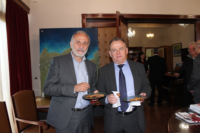 Μια ξεχωριστή γιορτή-δεξίωση πραγματοποιήθηκε σήμερα το μεσημέρι στο κτήριο της Π.Ε. Κεφαλληνίας, με τους δύο Αντιπεριφερειάρχες να υποδέχονται τον κόσμο (επίσημους και μη) στην καθιερωμένη κοπή της βασιλόπιτας, που είναι πάντα η πρώτη στο νησί.