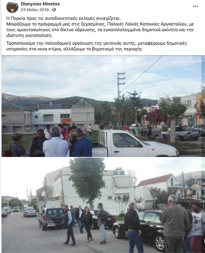 «Όλα τα λεφτά» «η αλίευση» της ανάρτηση του αντιδημάρχου έργων Μινέτου τρεις ημέρες πριν τις τελευταίες δημοτικές εκλογές στις 23 Μαΐου 2019.