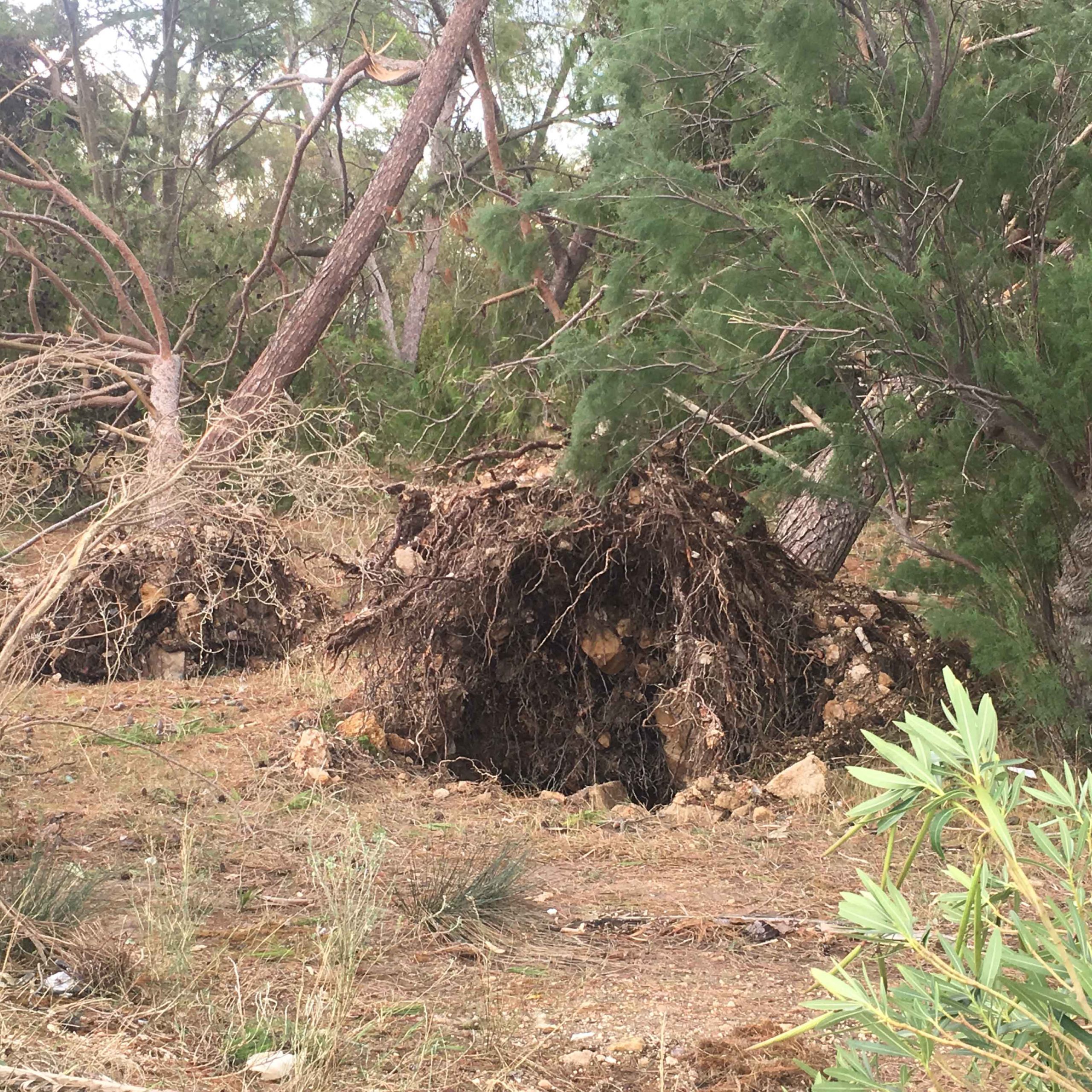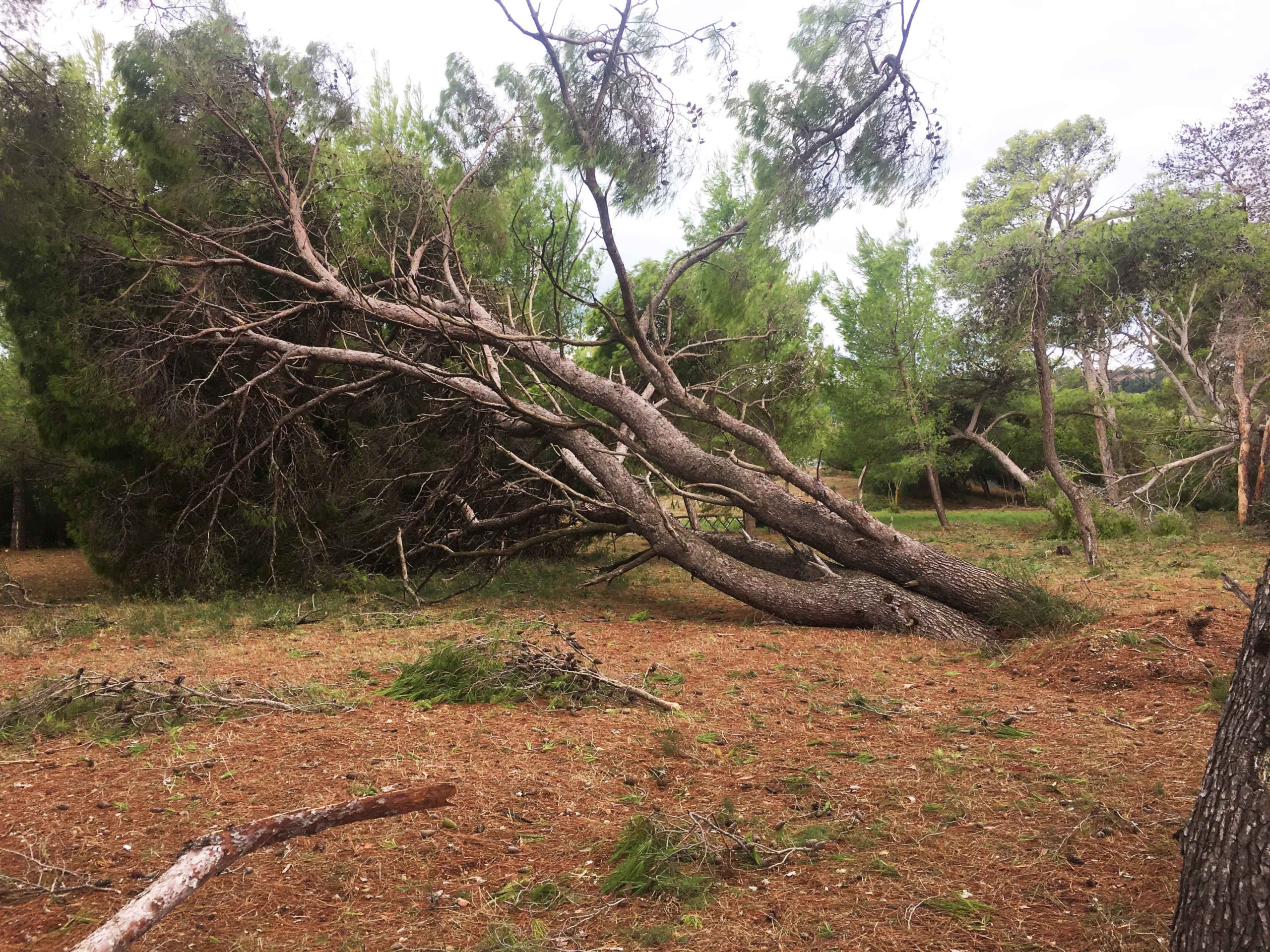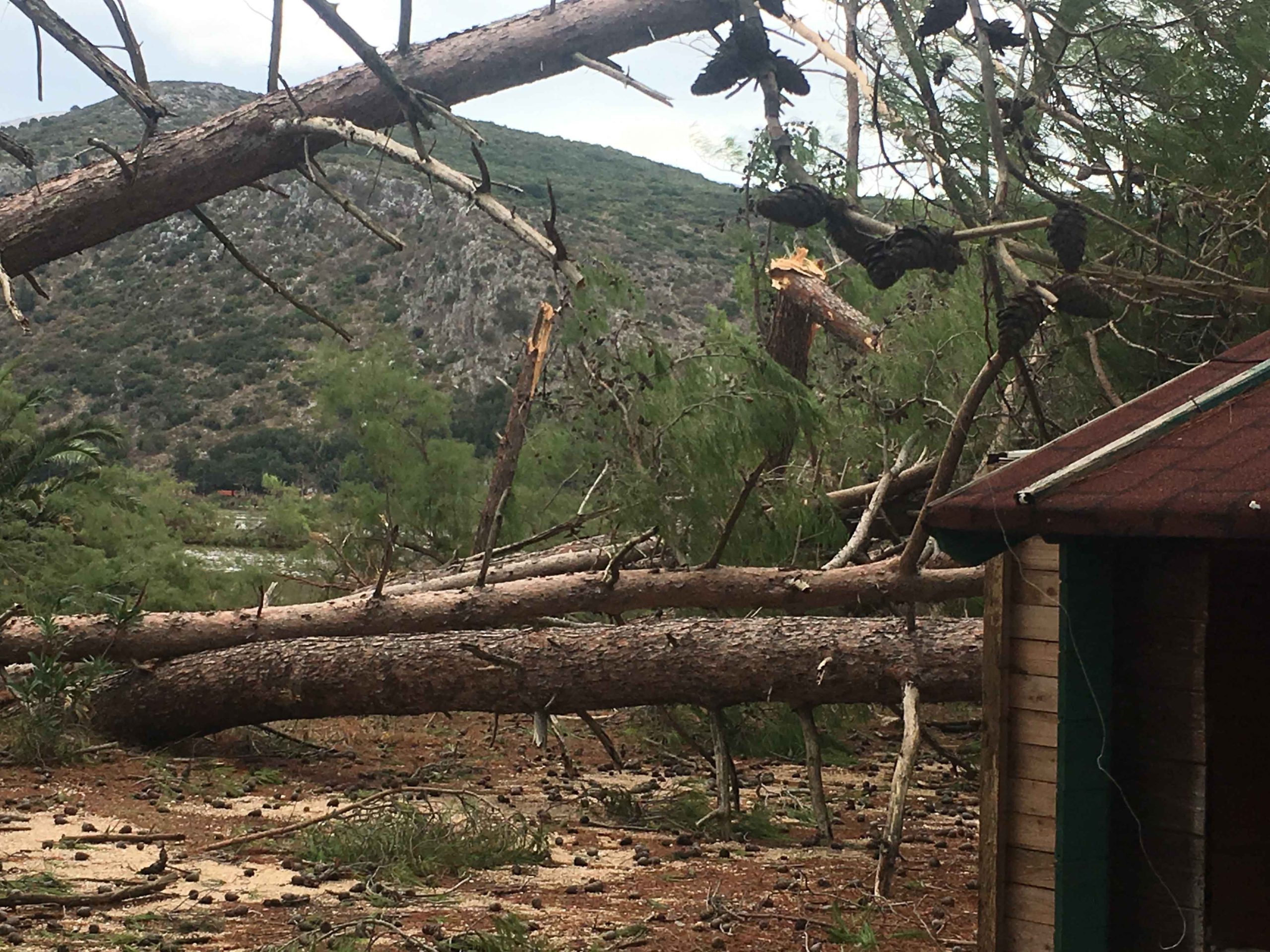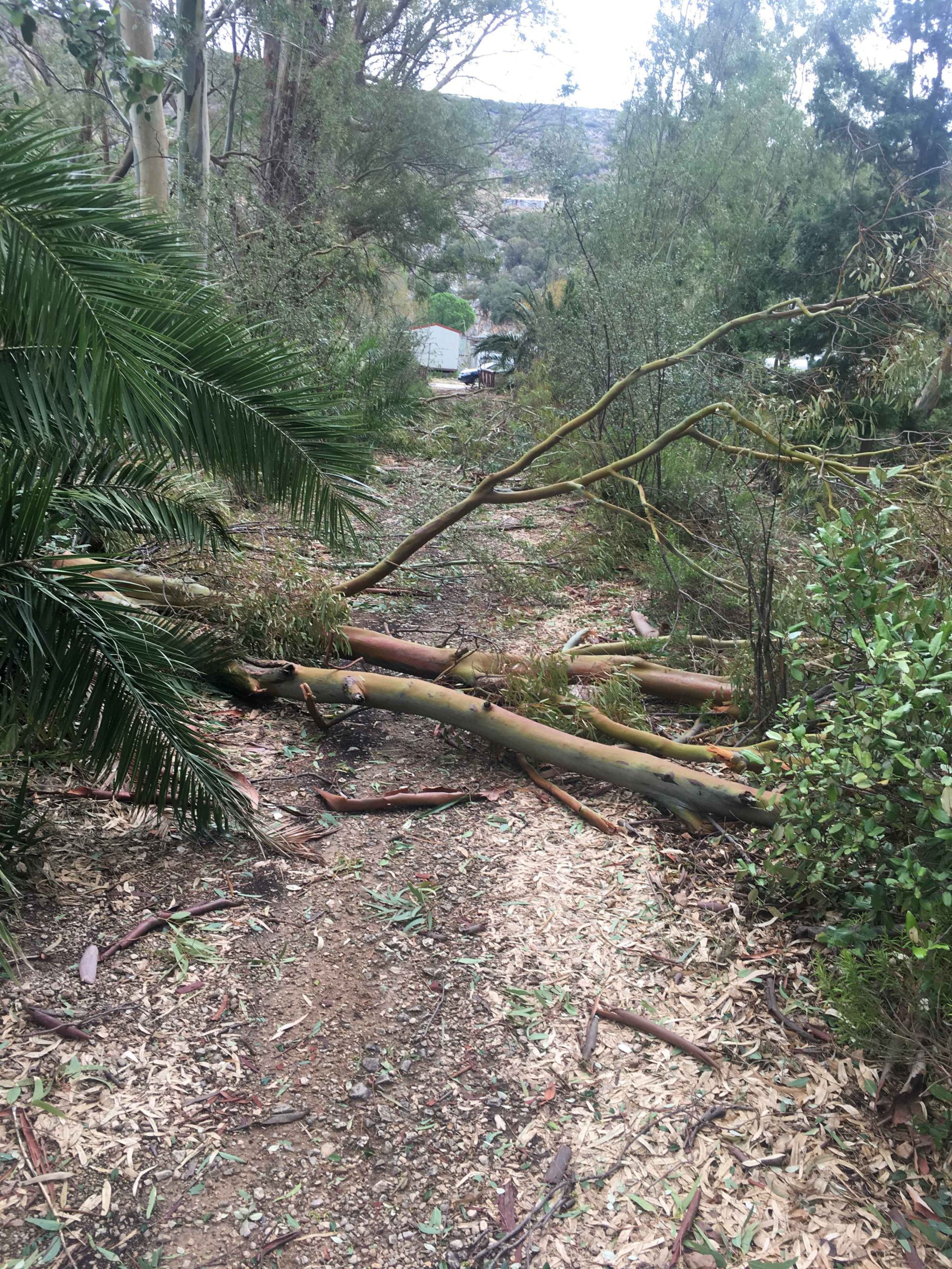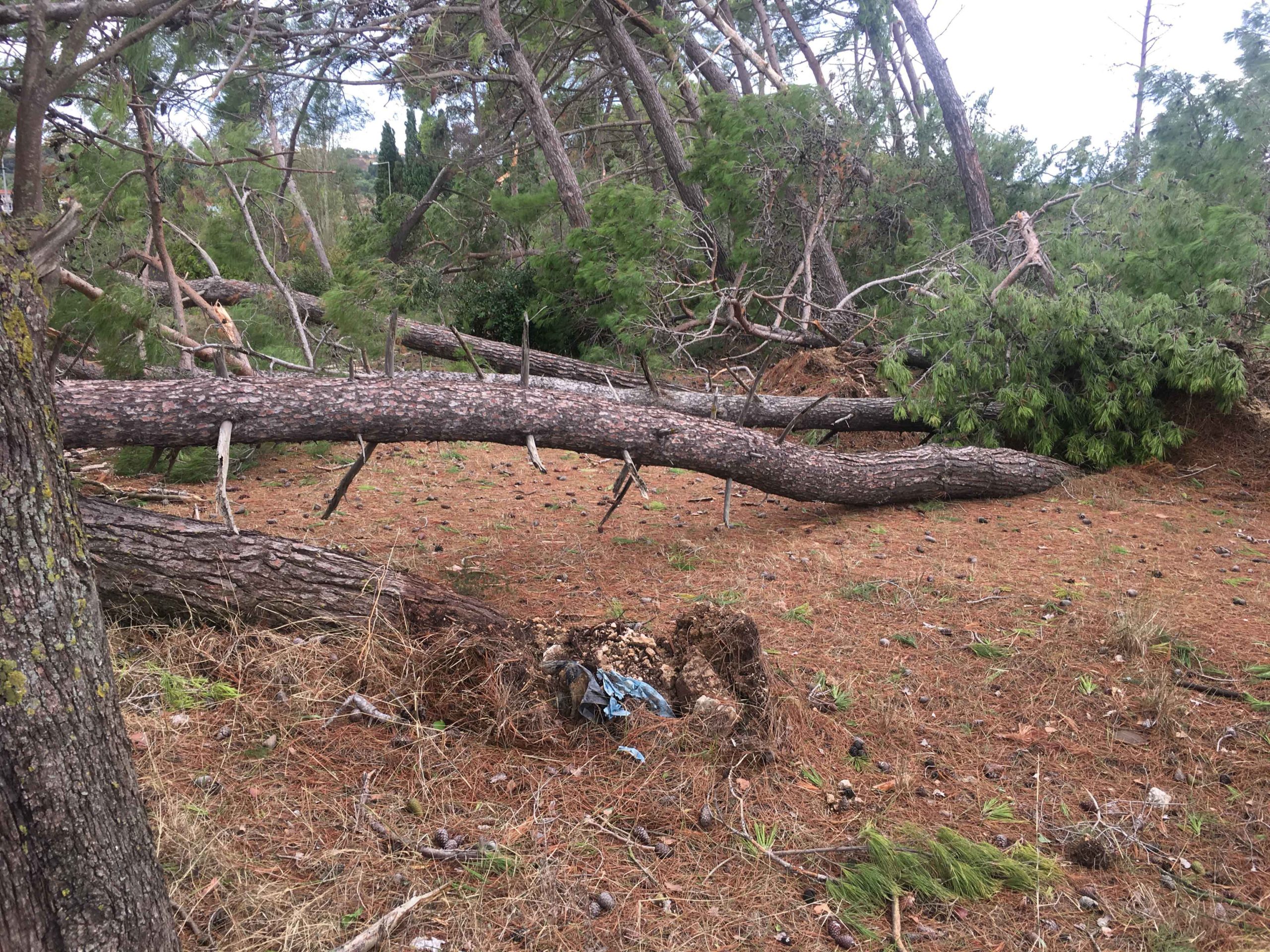 Πόνο ψυχής σου κάνει να βλέπεις τα θεώρατα δέντρα του Μικρού Παραδείσου μας να είναι ξεριζωμένα και ξαπλωμένα καταγής όπως φαντάροι που έδωσαν μιά μεγάλη αλλά άνιση μάχη με τον εχθρό.