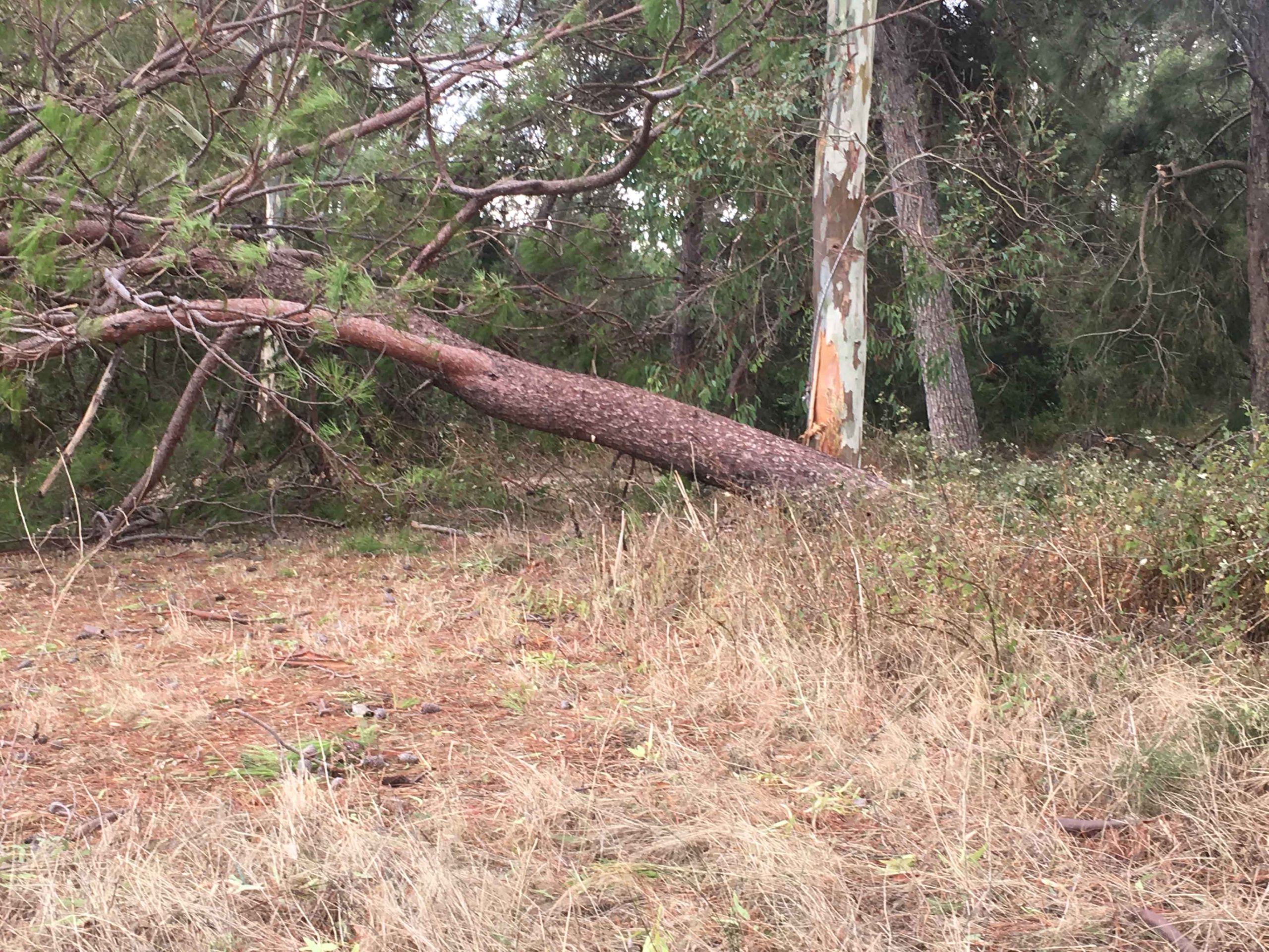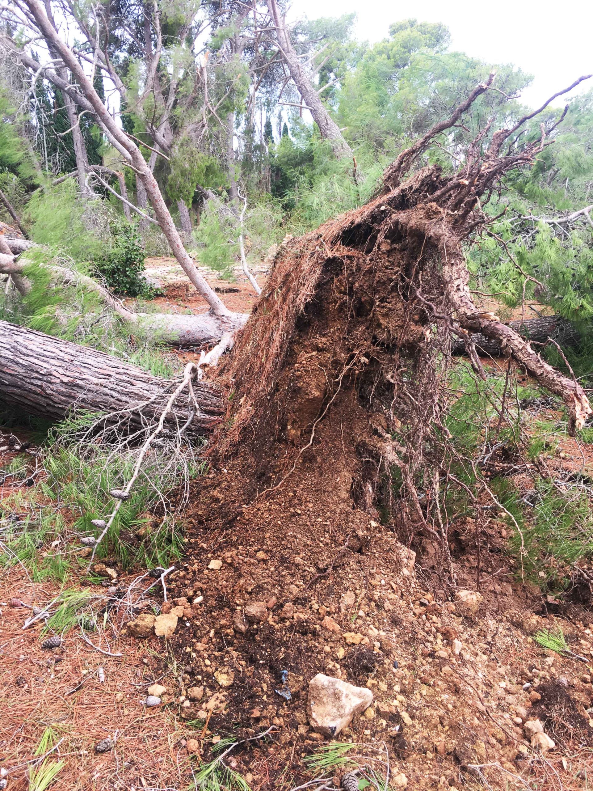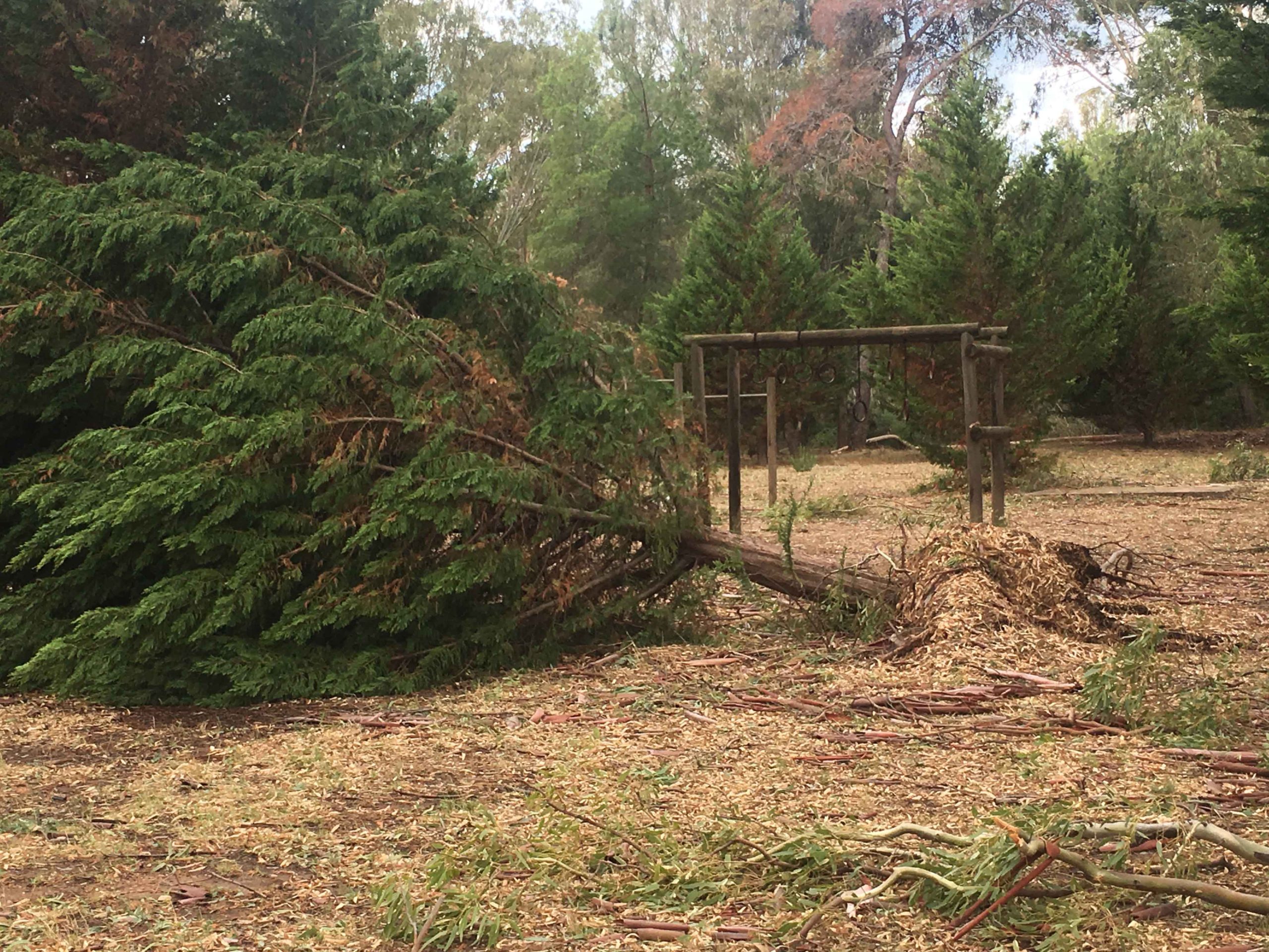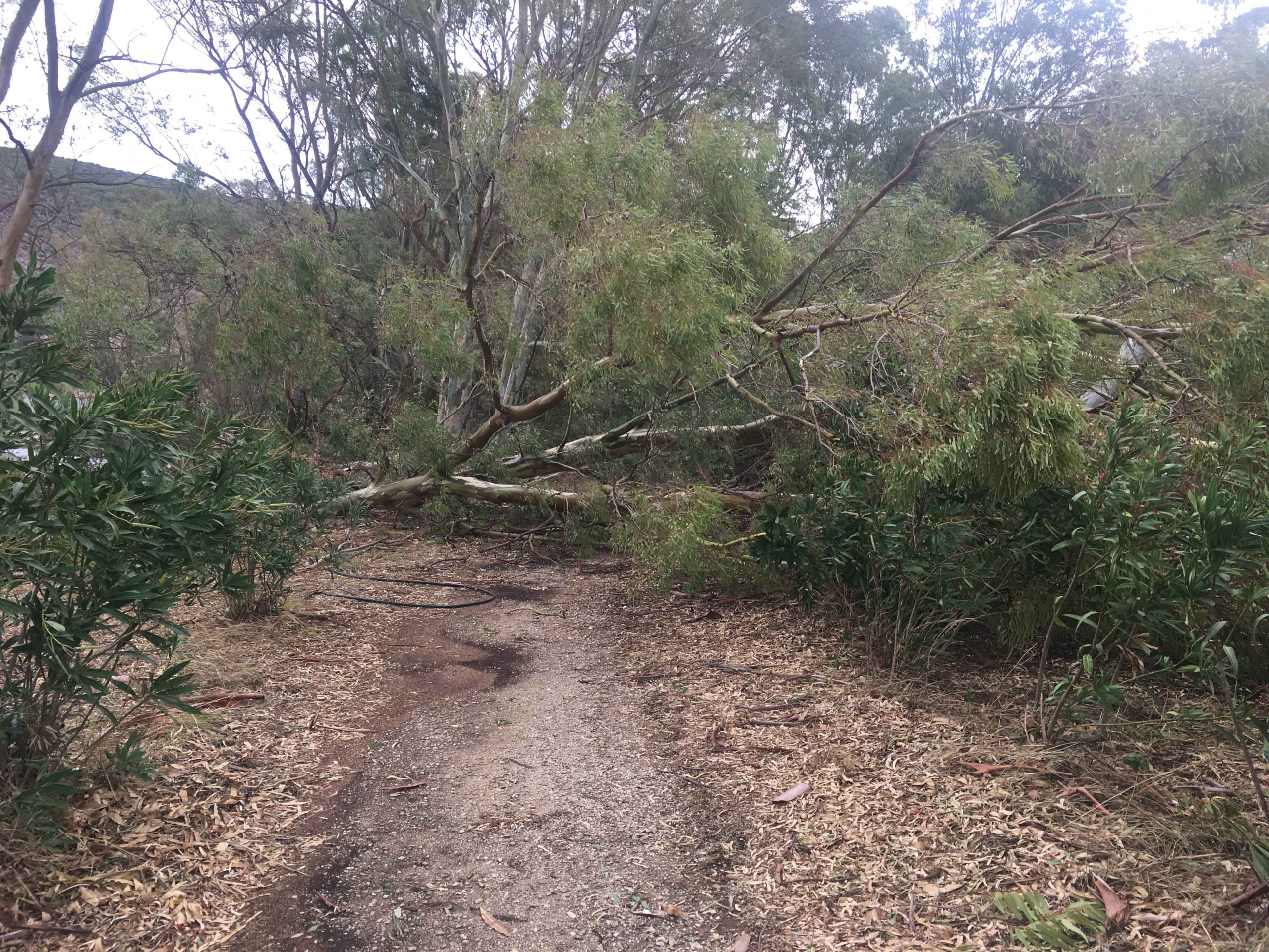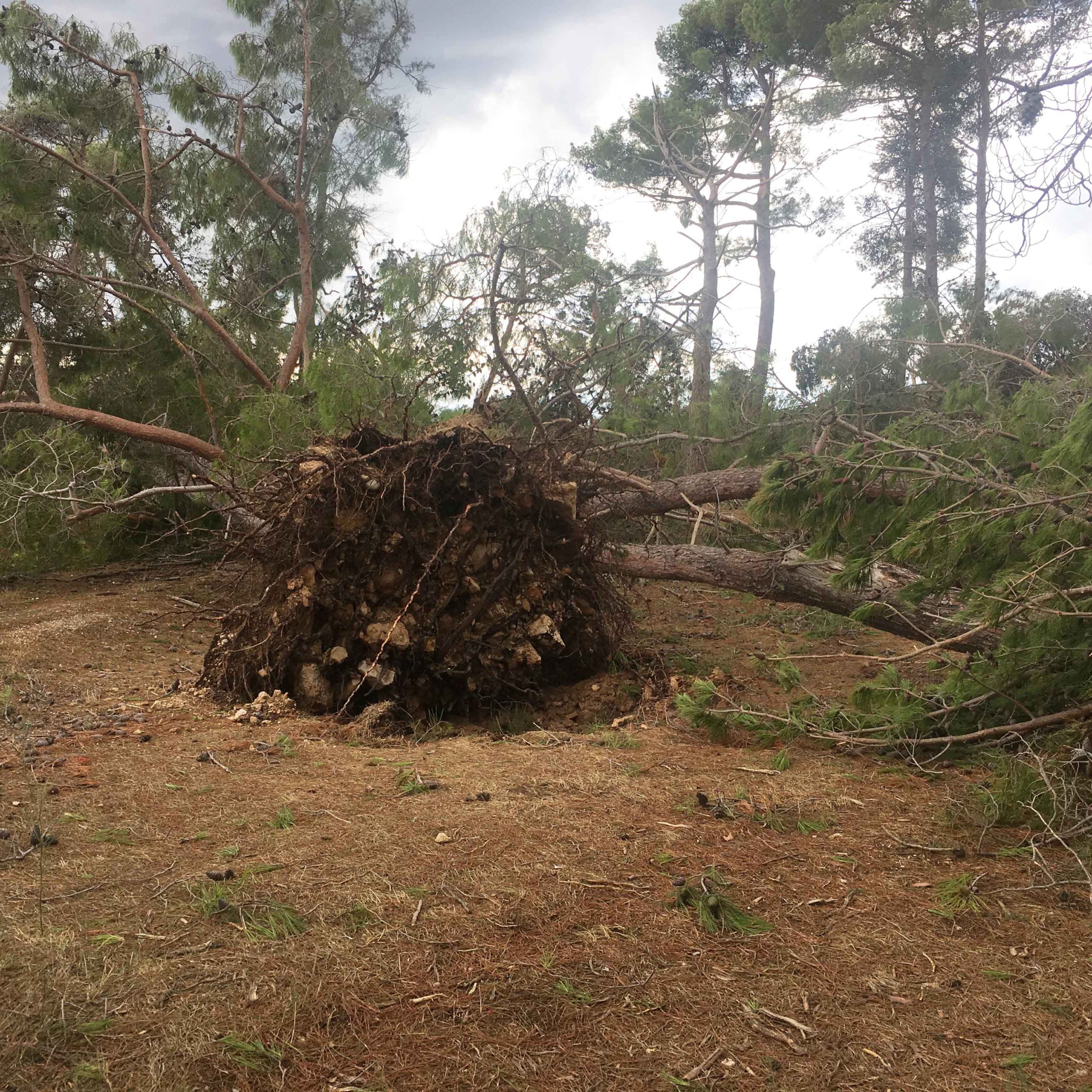 Πόνο ψυχής σου κάνει να βλέπεις τα θεώρατα δέντρα του Μικρού Παραδείσου μας να είναι ξεριζωμένα και ξαπλωμένα καταγής όπως φαντάροι που έδωσαν μιά μεγάλη αλλά άνιση μάχη με τον εχθρό.