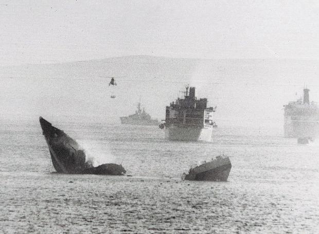 Η βρετανική αντεπίθεση ξεκινά στις 25 Απριλίου με την ανακατάληψη της Νότιας Γεωργίας από 75 κομάντος. Την 1η Μαΐου ξεκινά επιχείρηση για την ανακατάληψη των Φόκλαντς με βομβαρδισμό του αεροδρομίου της πρωτεύουσας Στάνλεϊ. Η μάχη μεταφέρεται σε αέρα και θάλασσα. Οι Αργεντινοί χάνουν στις 2 Μαΐου το καταδρομικό Στρατηγός Μπελγκράνο, που βυθίζεται από το υποβρύχιο Conqueror. 323 ναύτες χάνουν τη ζωή τους, που αντιπροσωπεύουν τις μισές απώλειες της Αργεντινής σε έμψυχο δυναμικό. Οι Αργεντινοί απαντούν δύο μέρες αργότερα με τη βύθιση του πολεμικού Sheffield από τους γαλλικούς πυραύλους αέρος – επιφανείας τύπου Εξοσέτ.