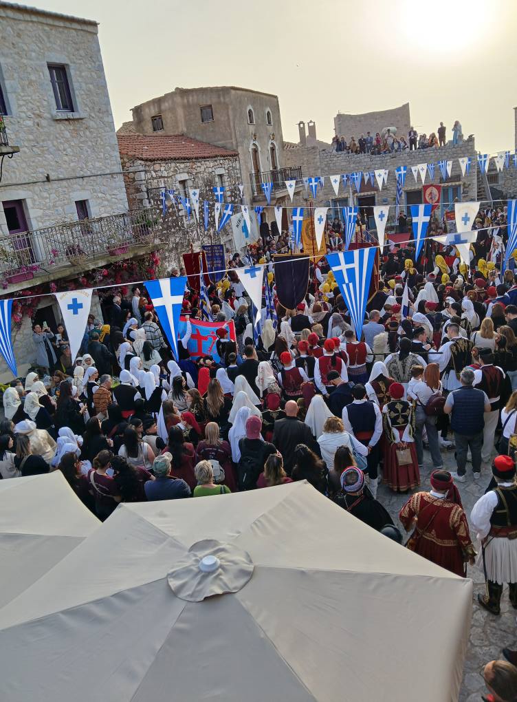 Τη Δευτέρα 17 του μήνα, στο επίκεντρο βρέθηκε στην Αρεόπολη, στην κορύφωση των εκδηλώσεων για παρέλαση.