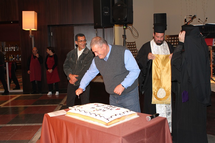 Για πρώτη φορά τα τελευταία δέκα τουλάχιστον χρόνια έγινε… συνωστισμός, με τους ανθρώπους του καταστήματος να τρέχουν να προσθέτουν τραπέζια για να καλύψουν την έλευση του κόσμου. Την πίτα ευλόγησαν ο π. Ευδόκιμος και ο π. Γεώργιος, αφού δεν κατάφερε να παραβρεθεί ο Μητροπολίτης Δημήτριος λόγω ενός προσωπικού του προβλήματος που παρουσιάστηκε την τελευταία στιγμή.