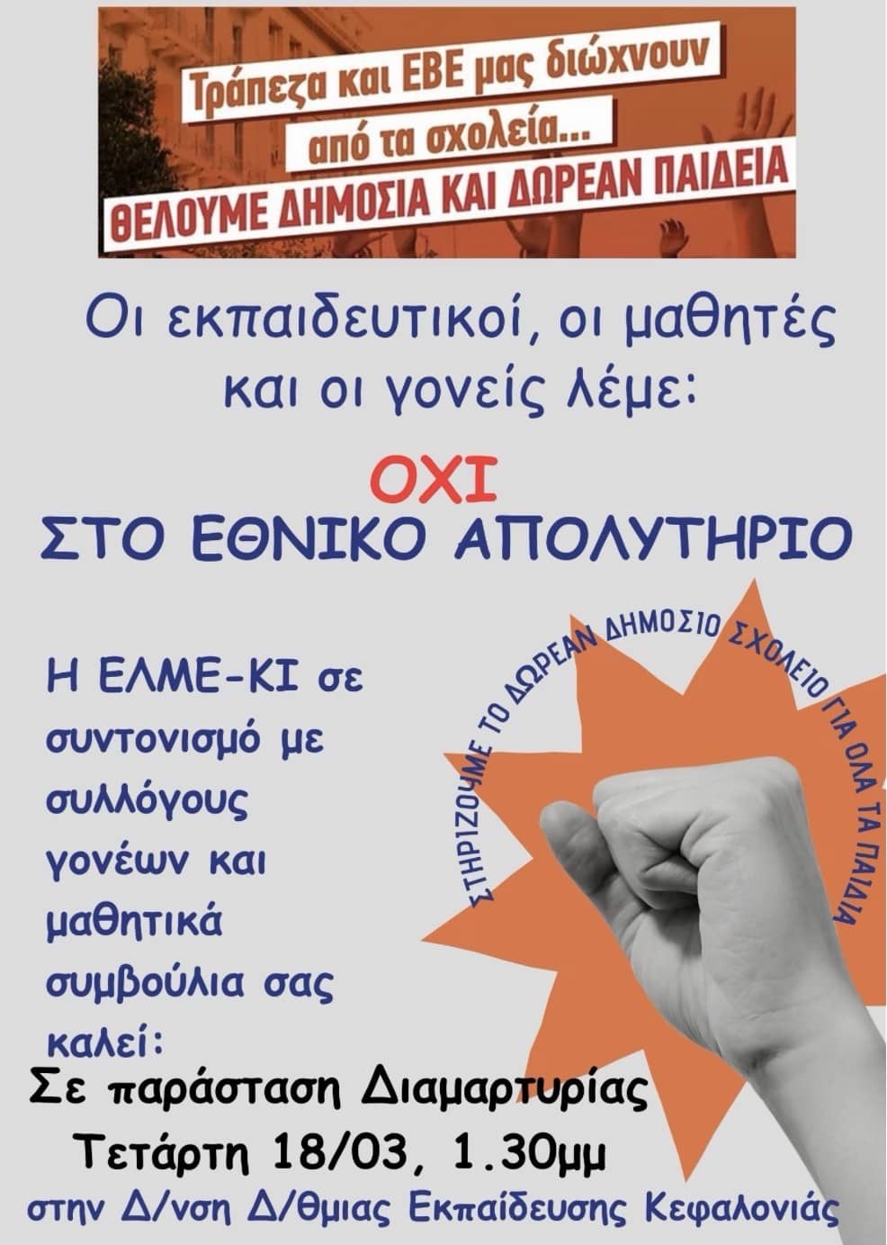 ΟΧΙ ΣΤΟ ΕΘΝΙΚΟ ΑΠΟΛΥΤΗΡΙΟ ΕΛΜΕ-ΚΙ