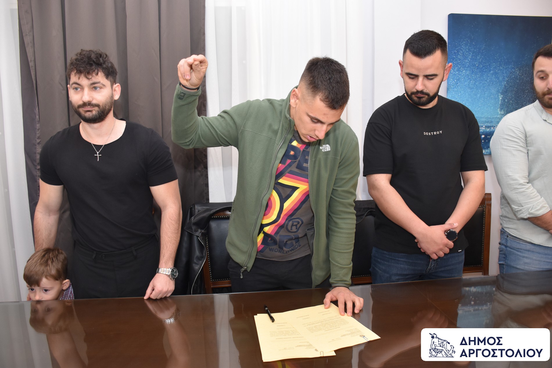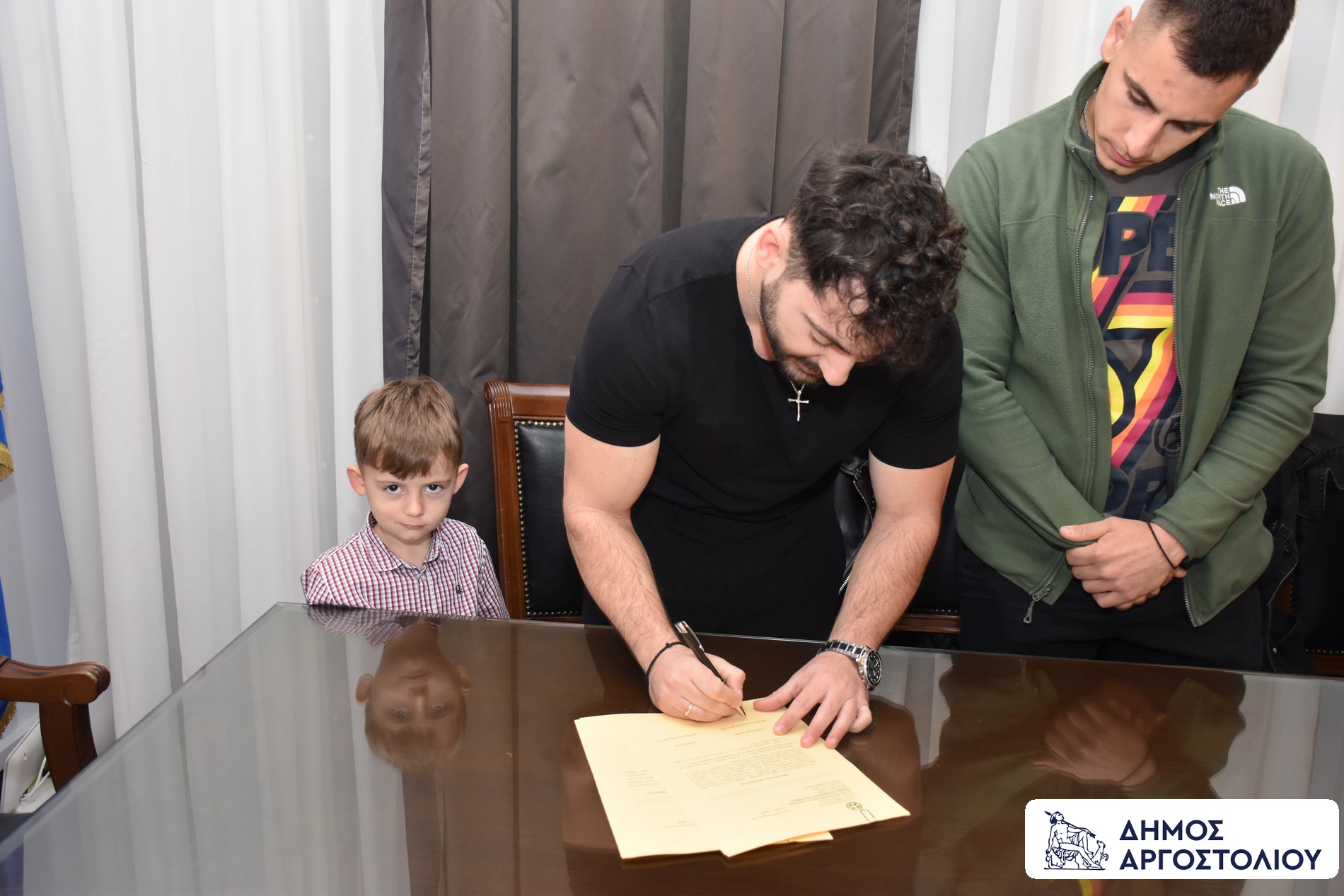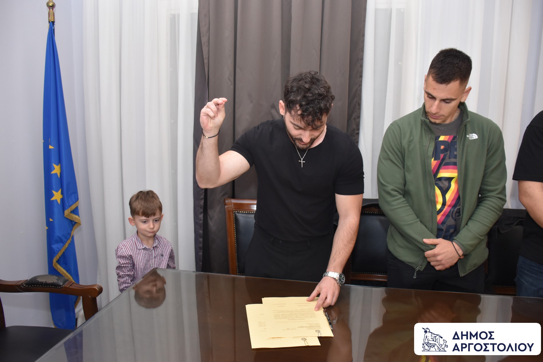 Η τελετή πραγματοποιήθηκε παρουσία του Δημάρχου Αργοστολίου κ. Θεόφιλου Μιχαλάτου, του Αναπληρωτή Δημάρχου κ. Γεωργίου Τσιλιμιδού, καθώς και του Διευθυντή των Διοικητικών Υπηρεσιών, κ. Στέλιου Παυλάτου.