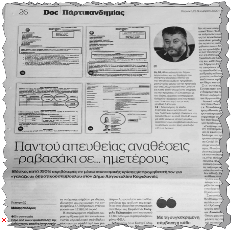 Το σκάνδαλο με τις μάσκες στο Δήμο Αργοστολίου στις στήλες της εφημερίδας «Documento» (29/11/2020)