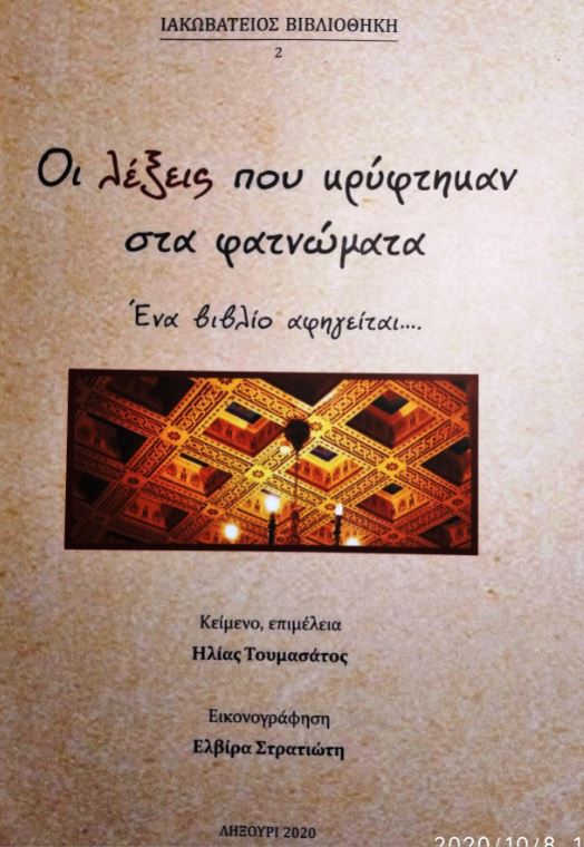 — ΟΙ ΛΕΞΕΙΣ ΠΟΥ ΚΡΥΦΤΗΚΑΝ ΣΤΑ ΦΑΤΝΩΜΑΤΑ. ΕΝΑ ΒΙΒΛΙΟ ΑΦΗΓΕΙΤΑΙ… (έκδοση 2020) – ένα παραμύθι/εκπαιδευτικό πρόγραμμα, που σχεδιάστηκε για τους μαθητές των τελευταίων τάξεων του Δημοτικού και των πρώτων τάξεων του Γυμνασίου και αποβλέπει στο να γνωρίσουν τα παιδιά την ιστορία, το ρόλο και την αξία της Ιακωβατείου Βιβλιοθήκης, ενώ παράλληλα μαθαίνουν ποικίλα στοιχεία για την κοινωνία και τον πολιτισμό της Παλικής (κείμενα Ηλία Τουμασάτου, εικονογράφηση Ελβίρας Στρατιώτη).
